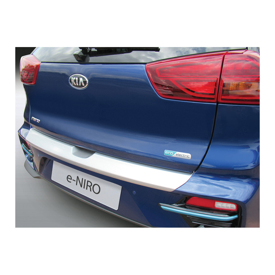 ABS Rear bumper protector Kia e-Niro 2018- SilverProtect the rear bumper of your car now with the RGM rear bumper protector!Most modern vehicles have painted rear bumpers, which are vulnerable to damage and very expensive to repaint and repair. RGM's rear bumper protectors solve this problem! These rear bumper protectors are custom made and protect the paintwork from damage when placing objects in the trunk, preventing potentially expensive repairs!Manufactured:The rear bumper protectors are manufactured from sturdy, durable ABS plastic and are available in the colors Black, Carbon Look , Silver or Brushed aluminum look. They are CNC trimmed to ensure a perfect fit and are secured in place with double sided adhesive tape. The bumper protectors are 3D-shaped and follow the bumper exactly for an optimal fit. Mounting: The rear bumper protective strips are easy to install by means of double-sided adhesive 3M tape. The installation takes about 10 minutes. Full step-by-step schematic assembly instructions are provided, along with a cleaning pouch. In some cases, the existing bolts or screws can also be used to fix the protective frame. Also watch the YouTube video for clear assembly instructions and the expected end result. RGM rear bumper protectors are designed to protect while adding style. Features:A practical, easy solution to cover scuffed and scratched bumpers. Hides old scratches, prevents new ones and prevents expensive bumper repairs! Quick and easy DIY fit using double sided adhesive tape Individually tailored - molded in recyclable ABS plastic Available in 4 different colors Looks like an original factory fitted product Designed and manufactured in the UK by RGM