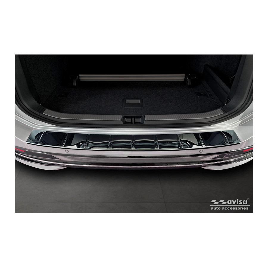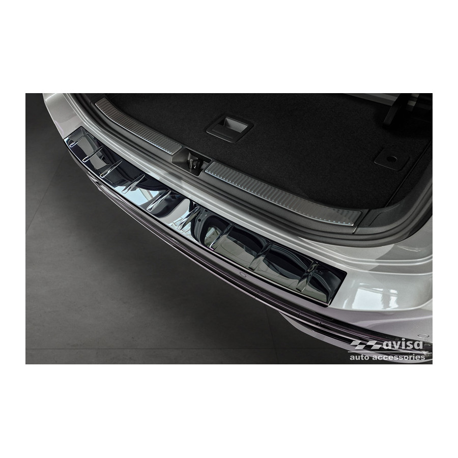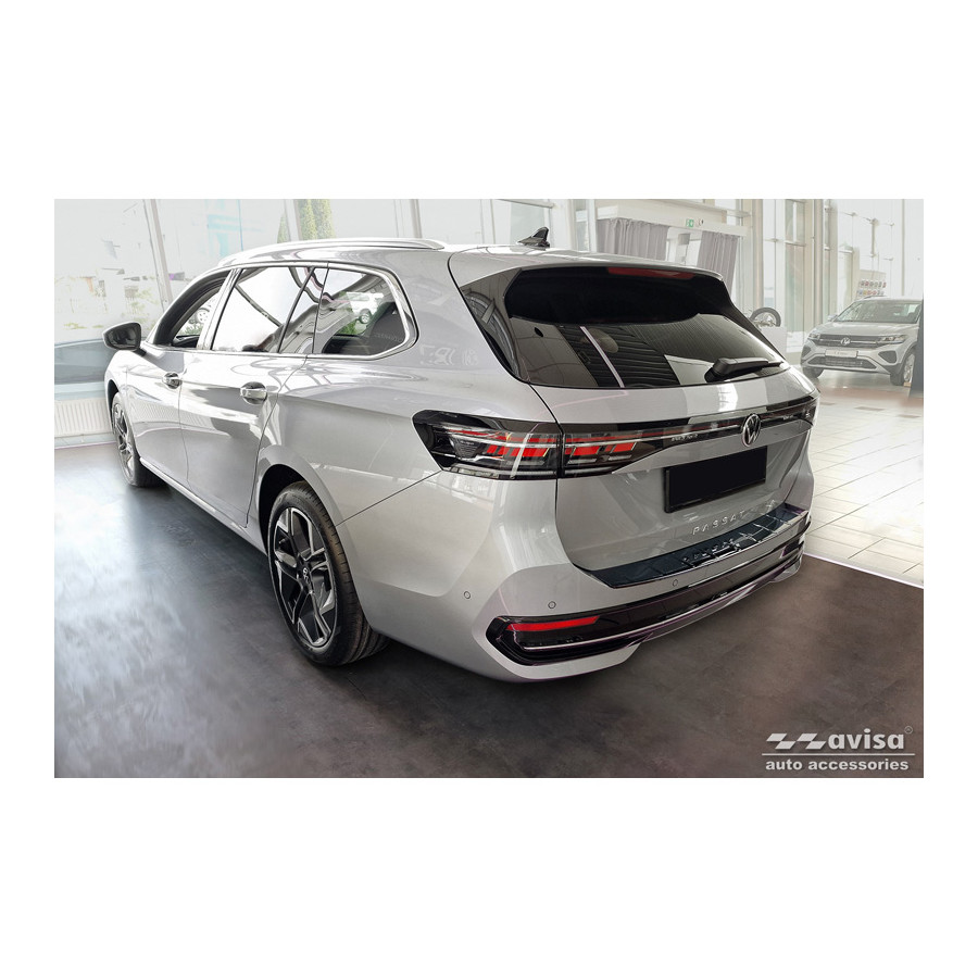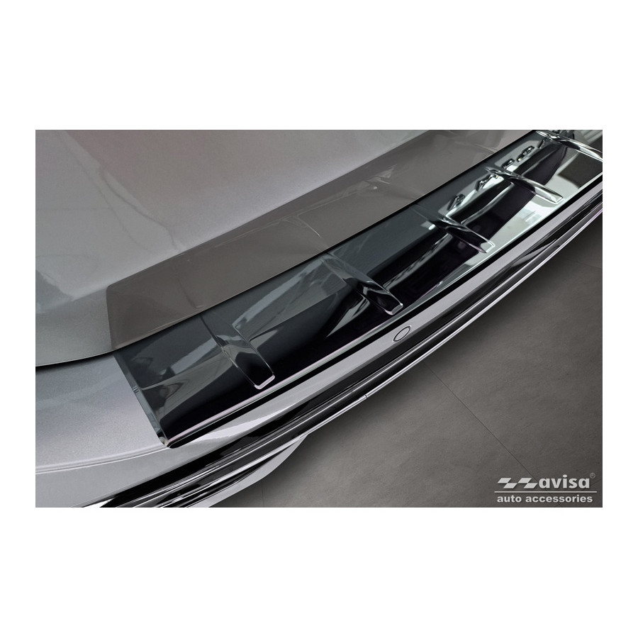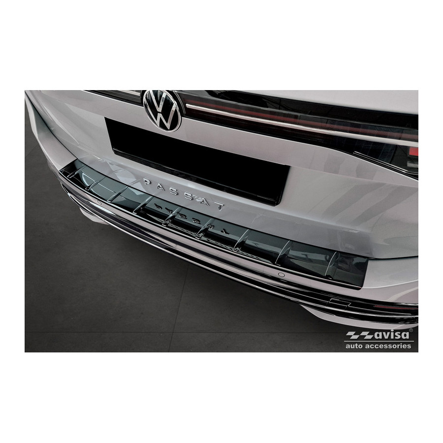 Black-Chrome Stainless Steel Rear Bumper Protector suitable for Volkswagen Passat Variant (CJ5) 2023 - 'Ribs' Provide optimal protection against daily wear and tear on the top of the rear bumper. This part of the car is very sensitive to damage caused by loading and unloading items. The costs for repairs and refinishing are high, and the value of your car can decrease.