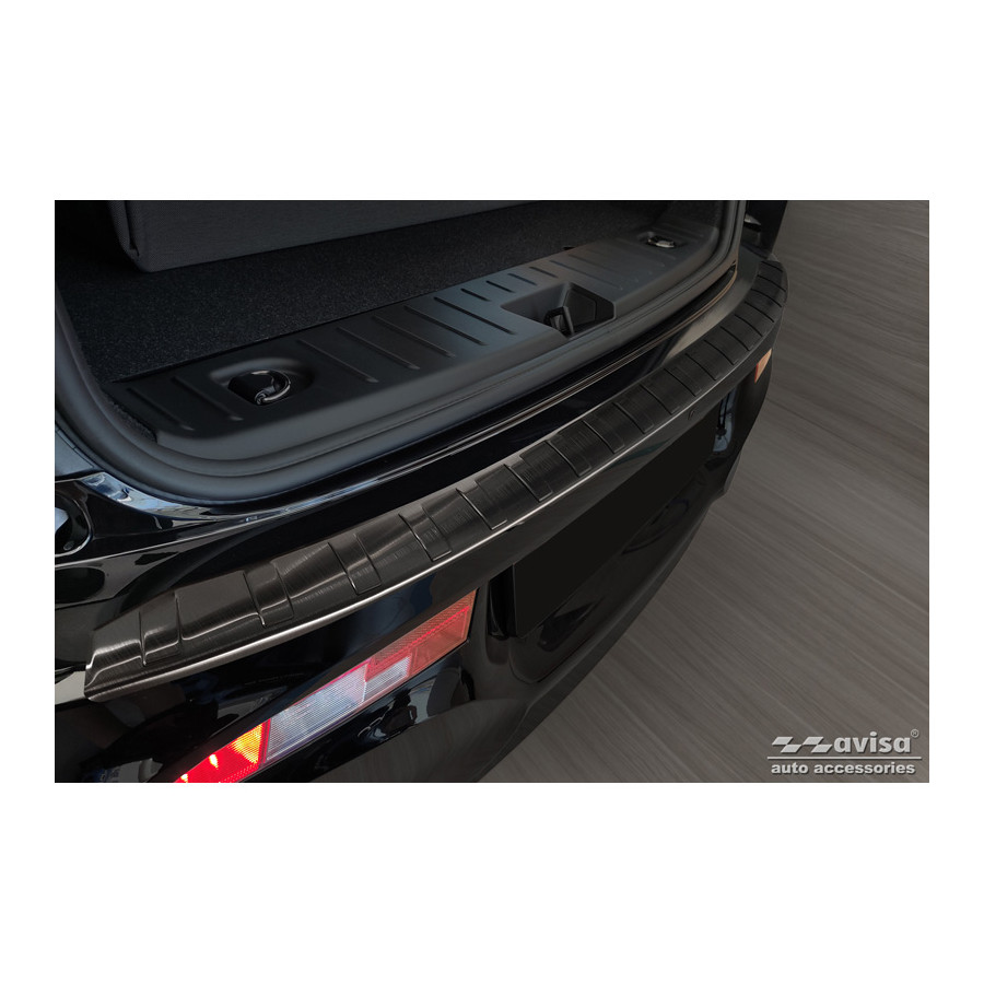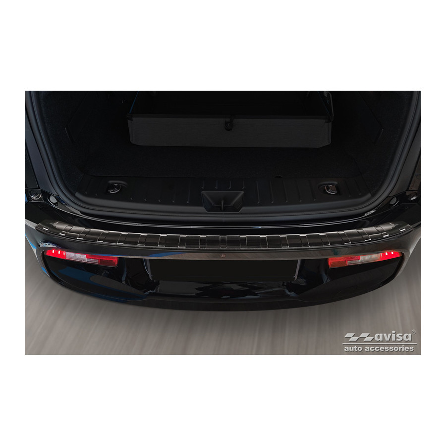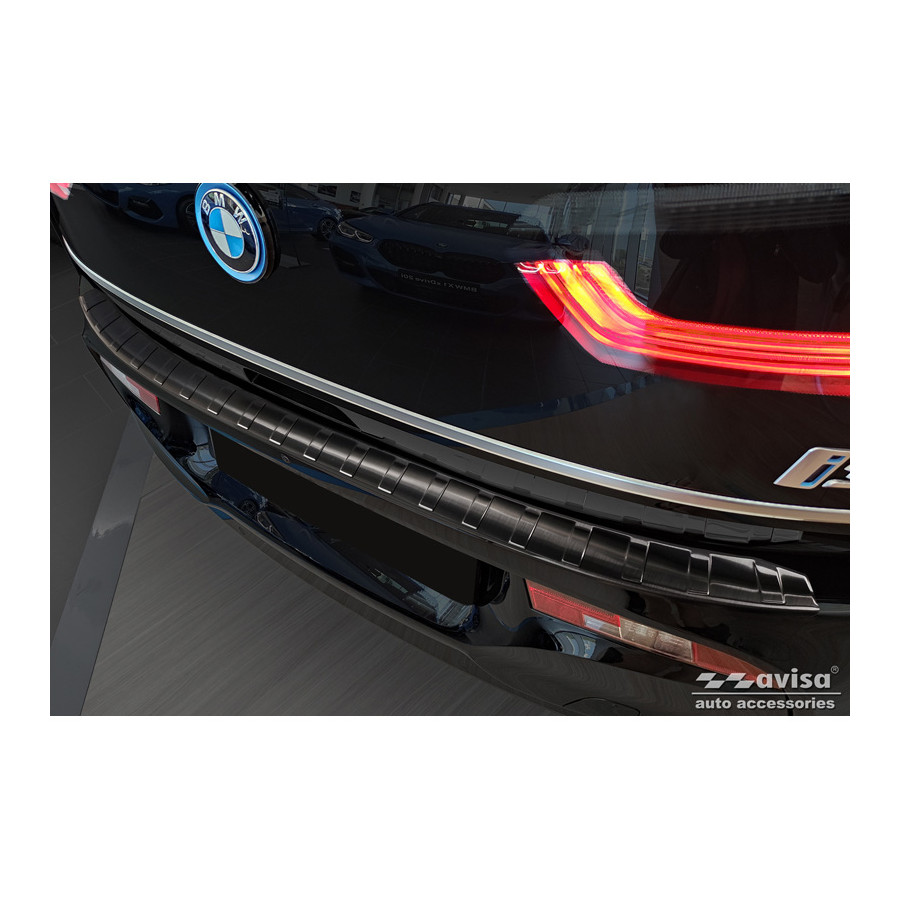 Black stainless steel rear bumper protector BMW i3 (i01) Facelift 2017- 'Ribs'. Provide optimal protection against daily wear and tear on the top of the rear bumper. This part of the car is very susceptible to damage from loading and unloading. Repair and repainting costs are high, and the value of your car can decrease.