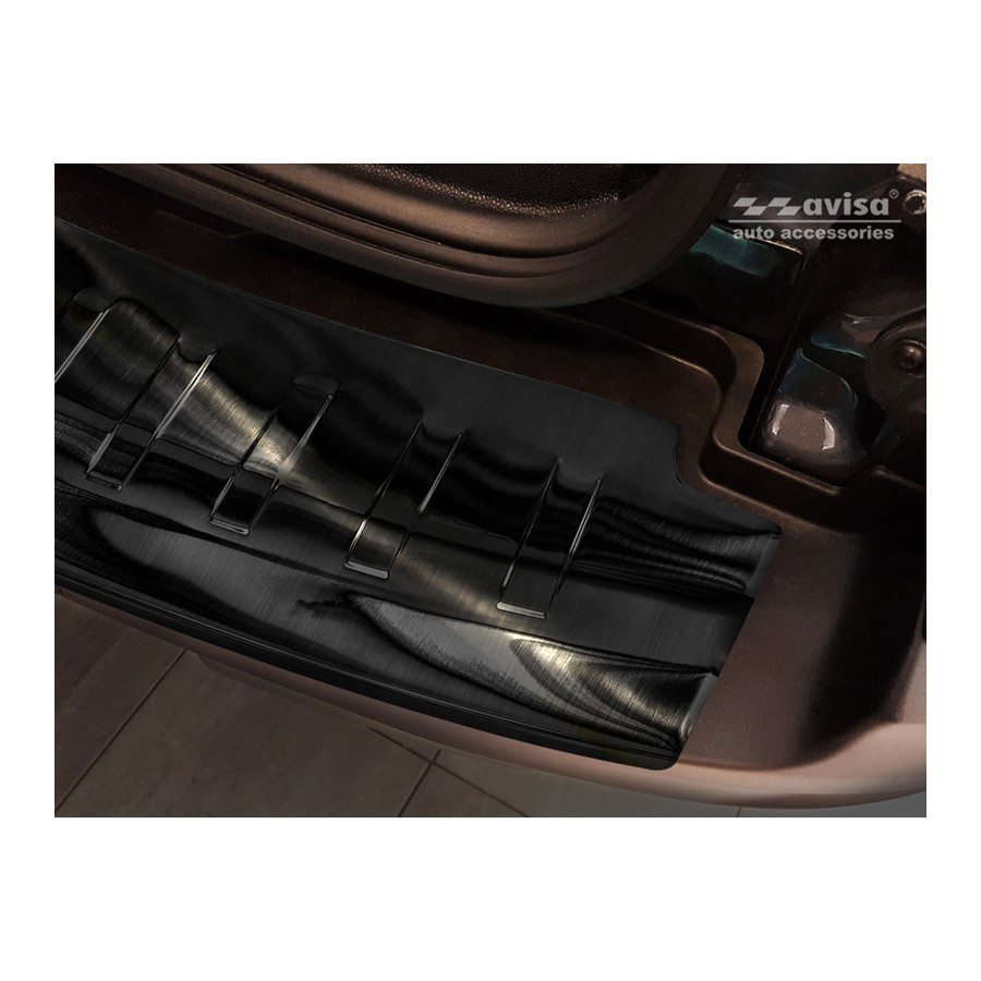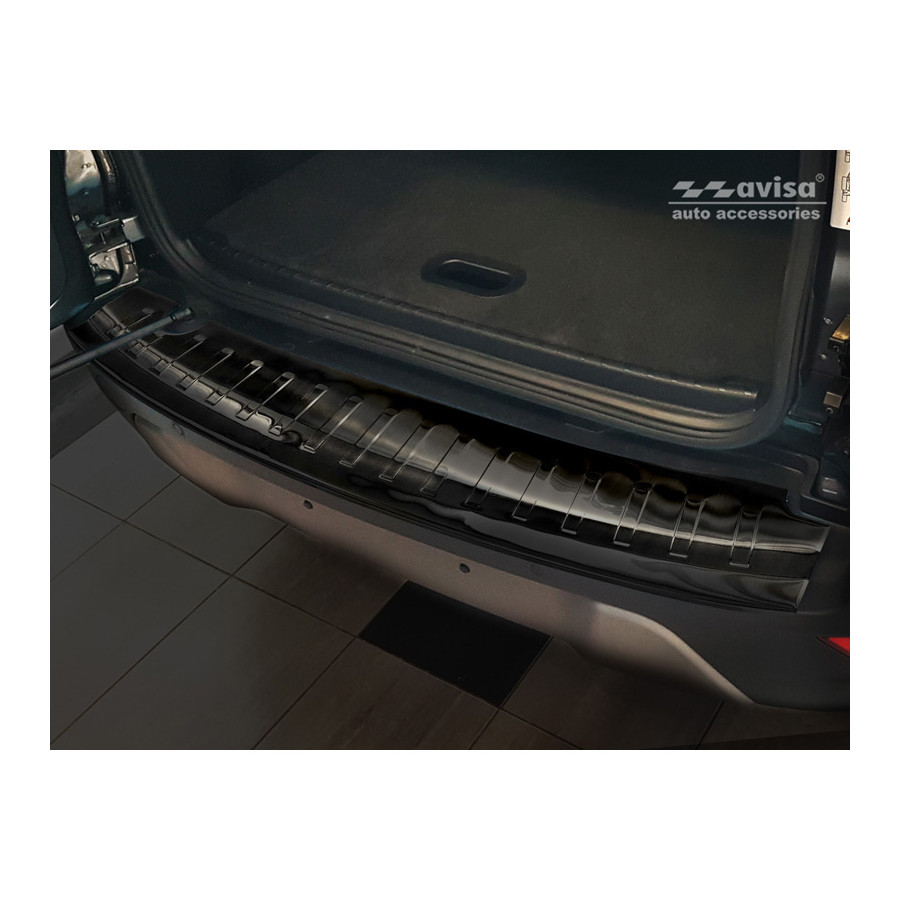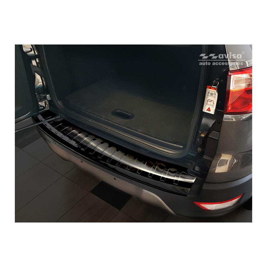 Ford Ecosport II Facelift 2017- Black stainless steel (powder-coated) rear bumper protector prevents damage to your car. Most cars are equipped with a painted rear bumper molding. For example, when loading items into the car, the top of the rear bumper is easily scratched. The rear bumper is very susceptible to damage, and repair and respray costs are high.