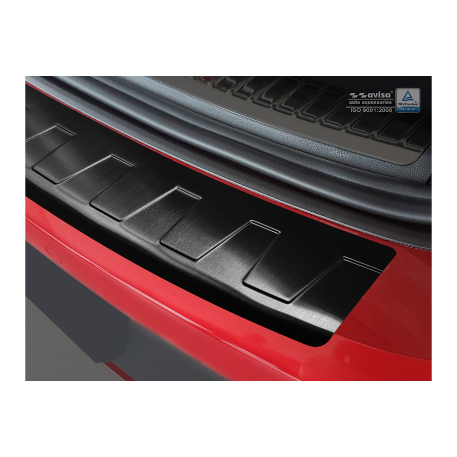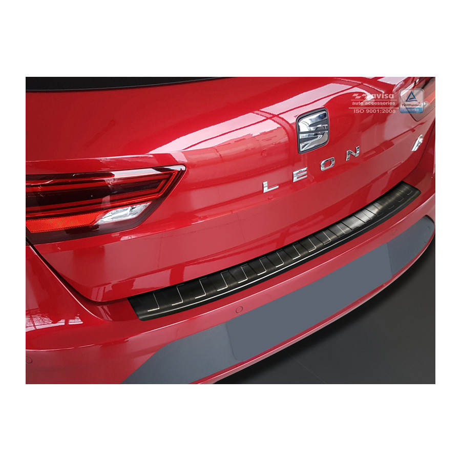 Seat Leon (5F) ST 2013-2017 & Facelift 2017- Black stainless steel (powder-coated) rear bumper protector prevents damage to your car. Most cars are equipped with a painted rear bumper molding. For example, when loading items into the car, the top of the rear bumper is easily scratched. The rear bumper is very susceptible to damage, and repair and respray costs are high.