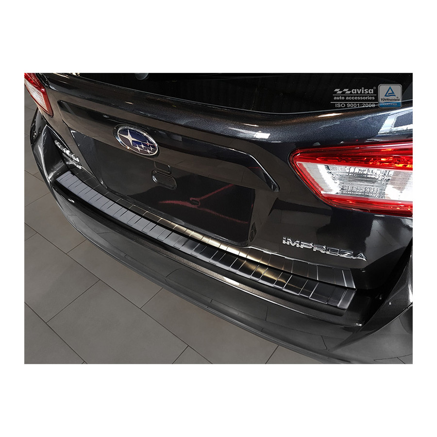 Subaru Impreza V (GT) 5-door 2017- Black stainless steel (powder-coated) rear bumper protector prevents damage to your car. Most cars are equipped with a painted rear bumper molding. For example, when loading items into the car, the top of the rear bumper is easily scratched. The rear bumper is very susceptible to damage, and repair and respray costs are high.