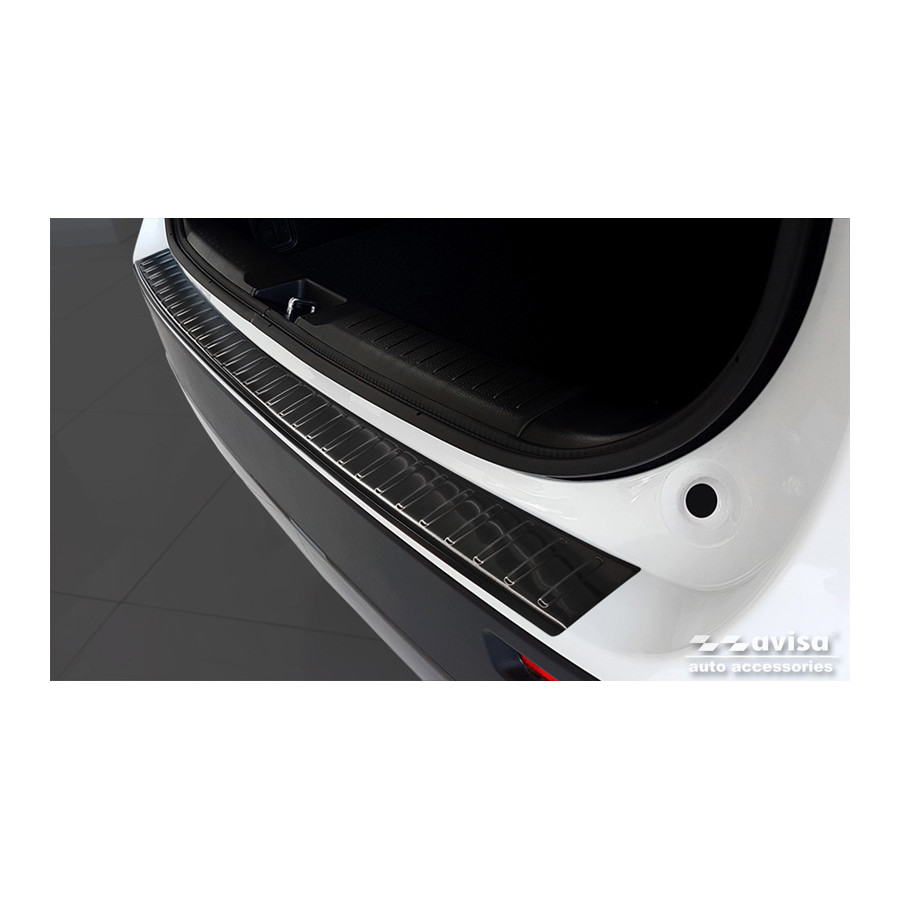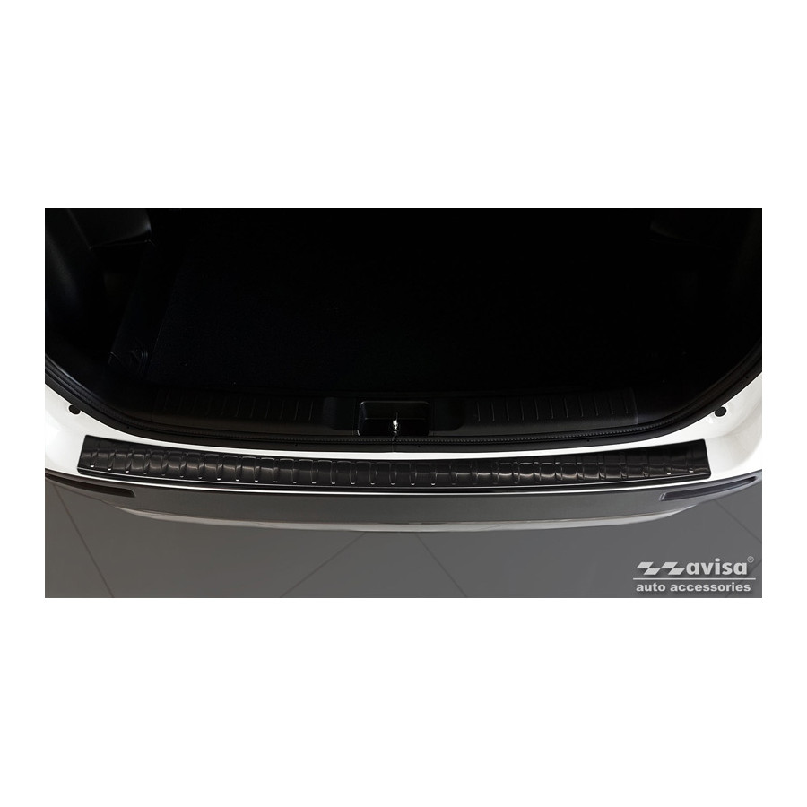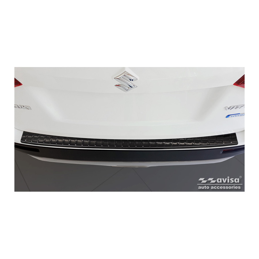 Black stainless steel rear bumper protector for Suzuki Vitara II 2015-2018 & FL 2018- incl. Hybrid 'Ribs'. Provide optimal protection against daily wear and tear on the top of the rear bumper. This part of the car is particularly susceptible to damage from loading and unloading. Repair and repainting costs are high, and the value of your car can decrease.