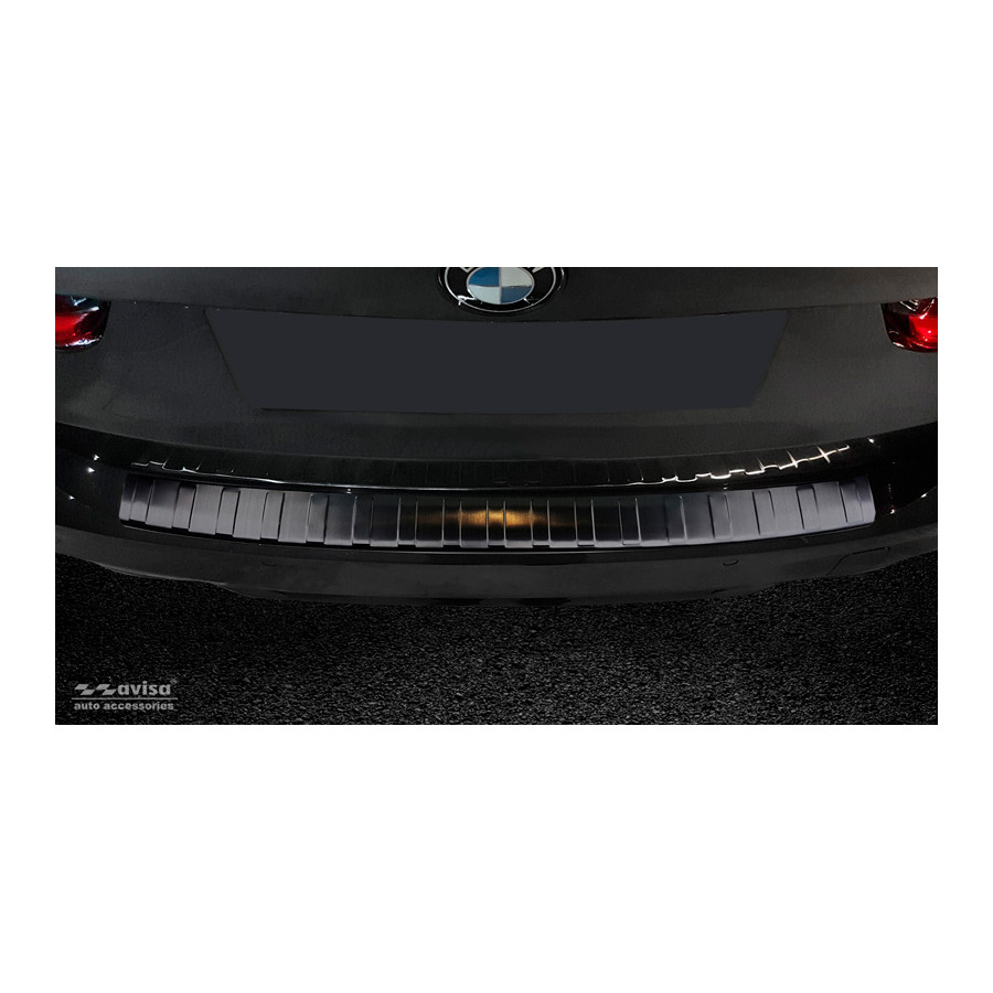 Black stainless steel rear bumper protector BMW 3-Series G21 Touring M-Package 2018- Provide optimum protection against daily wear on the top of the rear bumper. This part of the car is very sensitive to damage due to loading and unloading of things. The costs for repairs and refinishing are high, and the value of your car can fall.