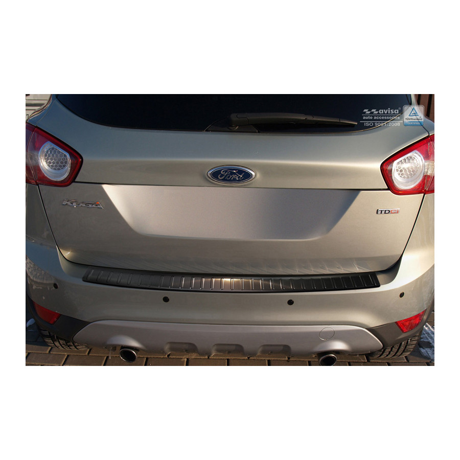 Ford Kuga 2008-2012 Black Stainless Steel (powder-coated) rear bumper protector prevents damage to your car. Most cars are equipped with a painted rear bumper molding. For example, when loading items into the car, the top of the rear bumper is easily scratched. The rear bumper is very susceptible to damage, and repair and respray costs are high.