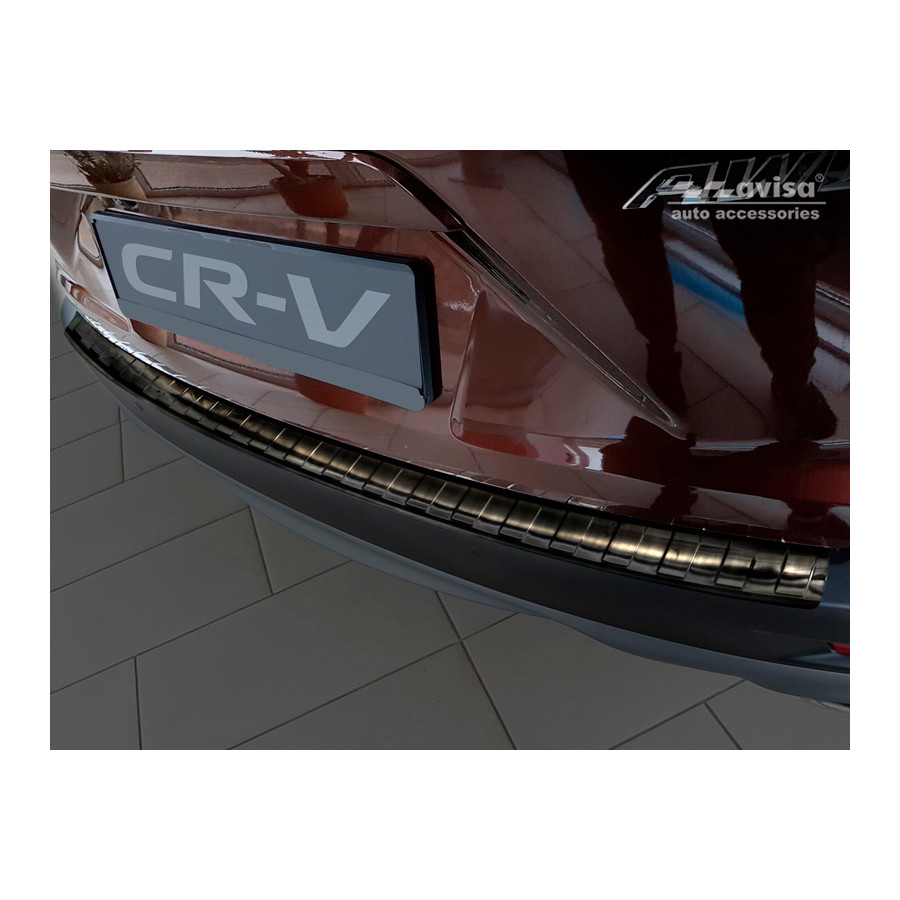 Honda CR-V (CW) 2018- Black stainless steel (powder-coated) rear bumper protector prevents damage to your car. Most cars are equipped with a painted rear bumper molding. For example, when loading items into the car, the top of the rear bumper is easily scratched. The rear bumper is very susceptible to damage, and repair and respray costs are high.