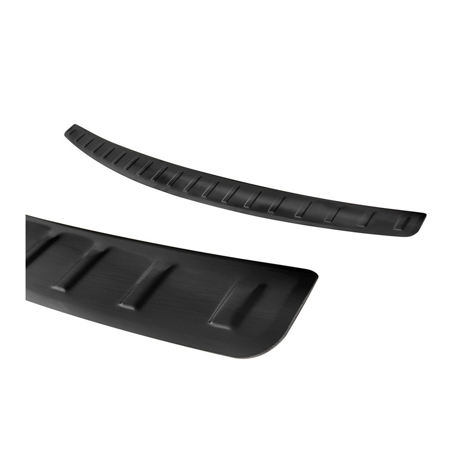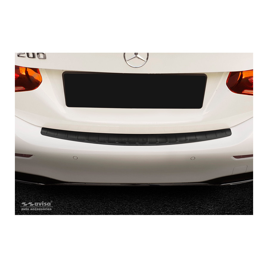 Black stainless steel rear bumper protector Mercedes A-Class W177 Sedan 9/2018 - "Ribs" Provide optimal protection against daily wear and tear on the top of the rear bumper. This part of the car is very susceptible to damage from loading and unloading. Repair and repainting costs are high, and the value of your car can decrease.