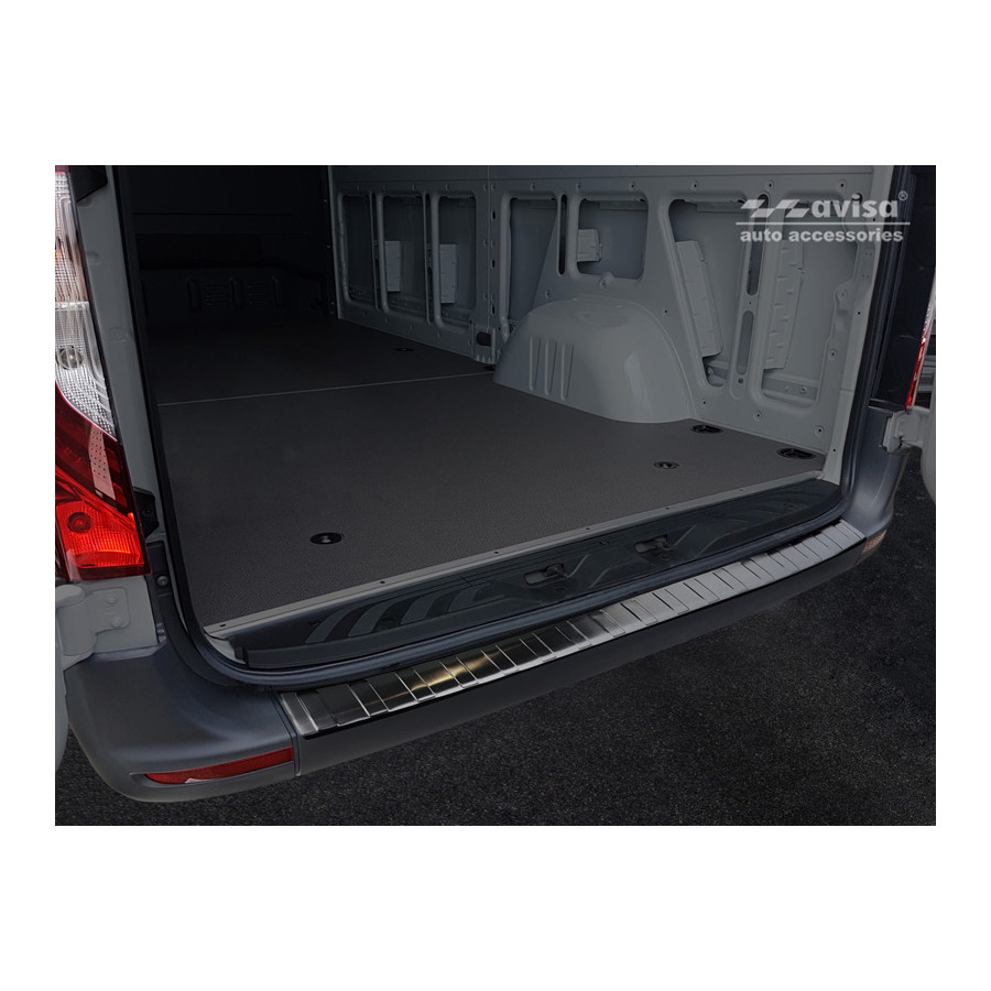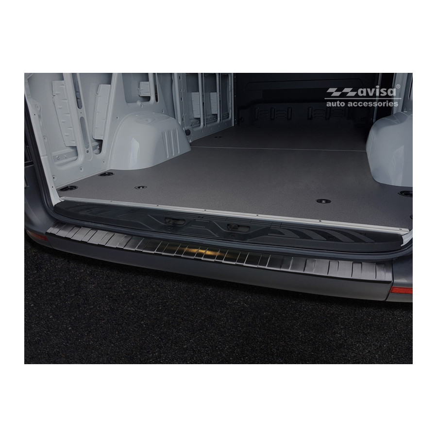 Mercedes Sprinter III 2018- Black stainless steel (powder-coated) rear bumper protector prevents damage to your car. Most cars are equipped with a painted rear bumper molding. For example, when loading items into the car, the top of the rear bumper is easily scratched. The rear bumper is very susceptible to damage, and repair and respray costs are high.