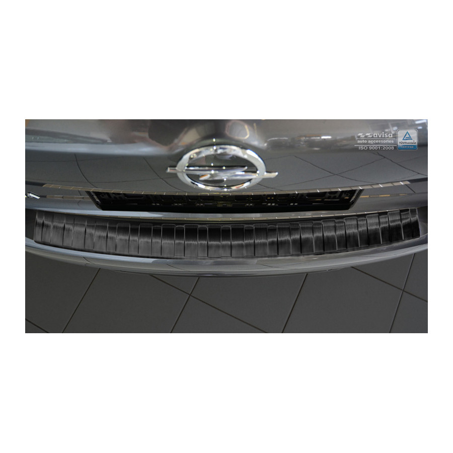 Opel Insignia B Sportstourer 2017- Black stainless steel (powder-coated) rear bumper protector prevents damage to your car. Most cars are equipped with a painted rear bumper molding. For example, when loading items into the car, the top of the rear bumper is easily scratched. The rear bumper is very susceptible to damage, and repair and respray costs are high.