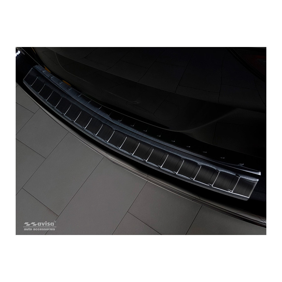 Opel Zafira C Tourer 2012-2016 & Facelift 2016- "Ribs" Black stainless steel (powder-coated) rear bumper protector prevents damage to your car. Most cars are equipped with a painted rear bumper molding. For example, when loading items into the car, the top of the rear bumper is easily scratched. The rear bumper is very susceptible to damage, and repair and respray costs are high.