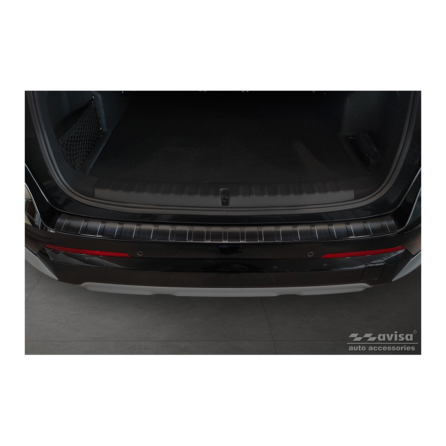 Black Stainless Steel Rear Bumper Protector Fits BMW X1 (U11) 2022- 'Ribs'Provide optimal protection against daily wear and tear on the top of the rear bumper. This part of the car is very sensitive to damage from loading and unloading. Repair and repainting costs are high, and the value of your car can decrease.