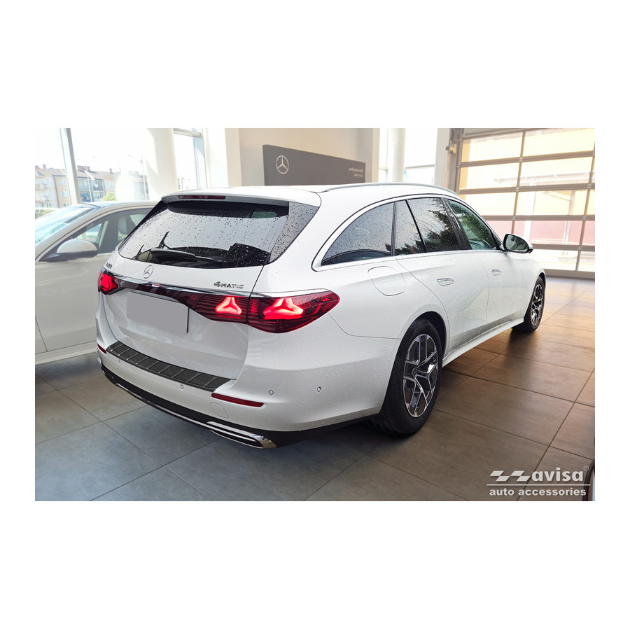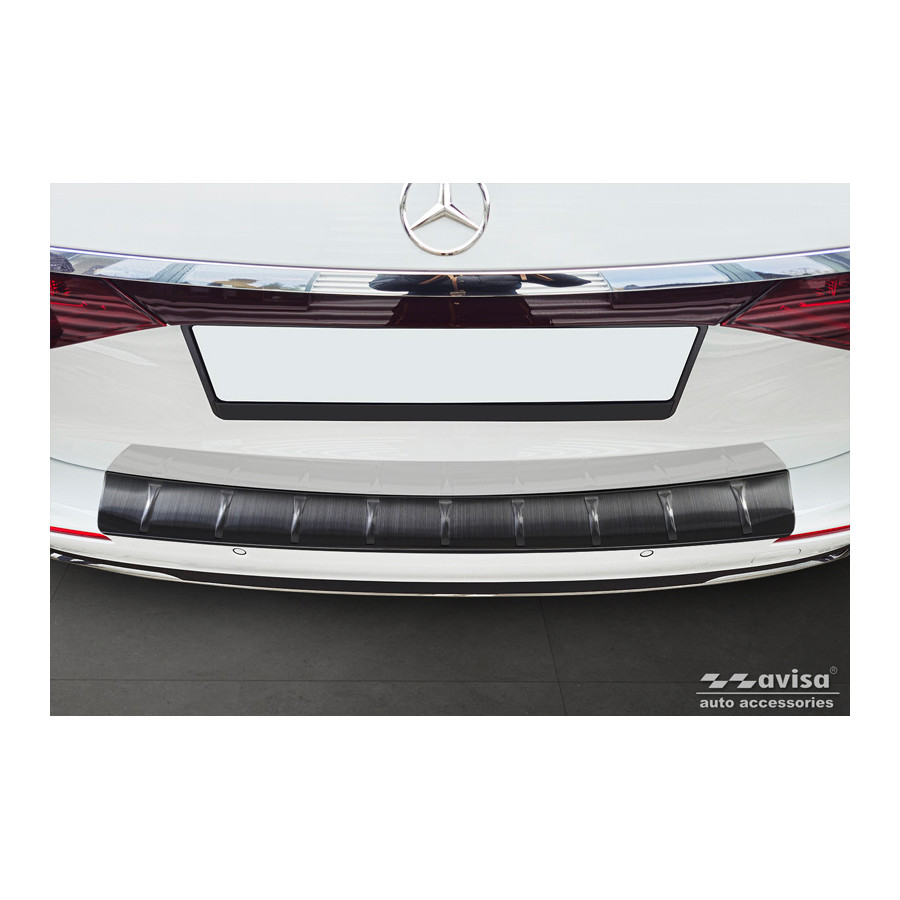 Black stainless steel rear bumper protector suitable for Mercedes E-Class (S214) Estate 2023- 'Ribs'