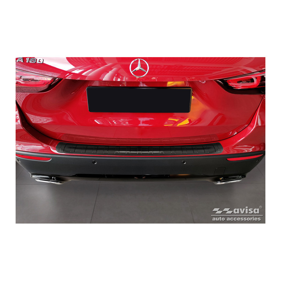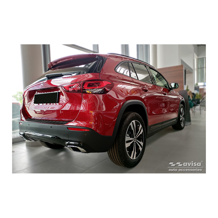 Black Stainless Steel Rear Bumper Protector suitable for Mercedes GLA-Class II H247 2020- 'Ribs' Provide optimal protection against daily wear and tear on the top of the rear bumper. This part of the car is very sensitive to damage caused by loading and unloading items. The costs for repair and refinishing are high, and the value of your car can decrease.