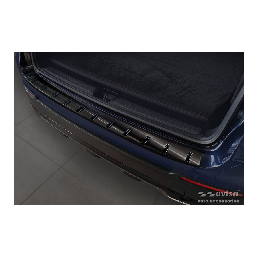Black Stainless Steel Rear Bumper Protector Fits Mercedes GLC (X253) 2015-2019 & Facelift 2019- 'STRONG EDITION'Ensure optimal protection against daily wear and tear on the top of your rear bumper. This part of the car is very sensitive to damage from loading and unloading. Repair and respraying costs are high, and the value of your car can decrease. With a rear bumper protector, you can prevent damage to the top of your rear bumper. These are tailor-made for your car type and conform to the bumper of your car, resulting in a perfect fit.Material:The Avisa 'STRONG EDITION' protectors are made of stainless steel combined with hardened polyurethane ribs, which in addition to protection also gives your car a stylish look. The material is sturdy, durable and resistant to all weather conditions. This ensures the molding will last for years. With over 30 years of experience, Avisa is a leader in the design and production of these moldings. They are available in various colors and styles. Installation: These moldings are very easy to install. They are attached using double-sided 3M tape, which will not damage the original paint. This is included in the package, along with complete schematic installation instructions. Installation takes approximately 10 minutes. For a selection of rear bumper protectors that are attached directly to unpainted bumpers, a primer is included. The primer enhances the strength of the 3M tape.
