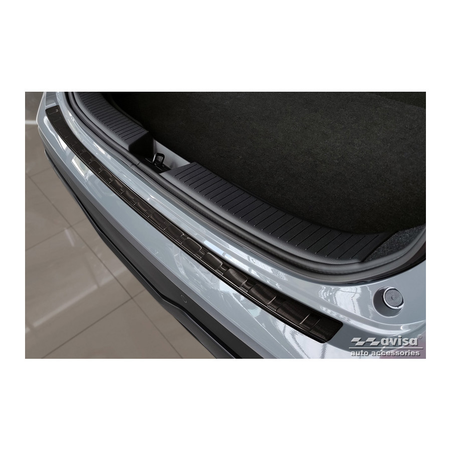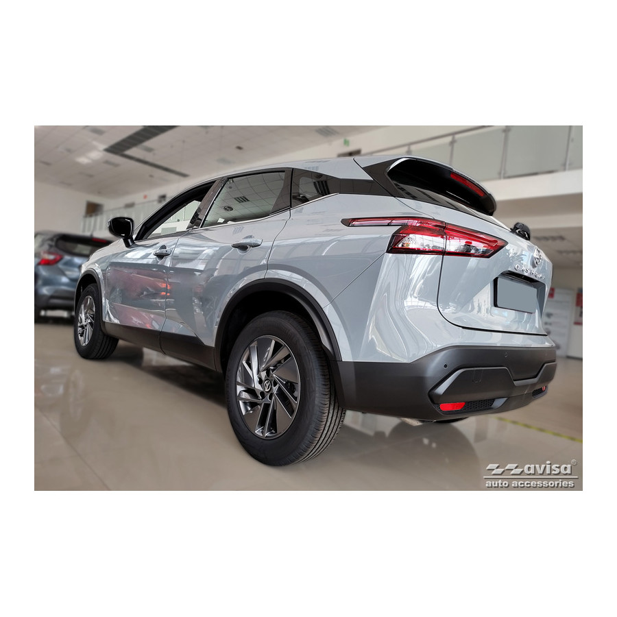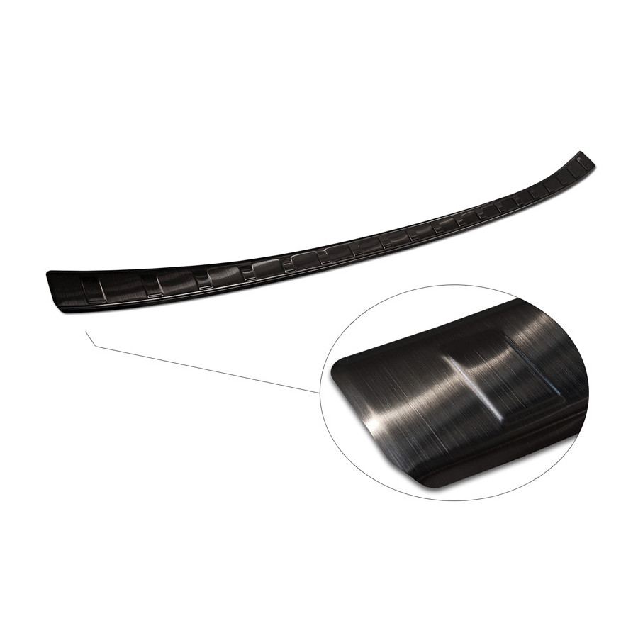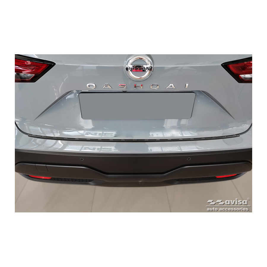 Black stainless steel rear bumper protector for the Nissan Qashqai III (2021) - "Ribs." Provide optimal protection against daily wear and tear on the top of the rear bumper. This part of the car is particularly susceptible to damage from loading and unloading. Repair and repainting costs are high, and the value of your car can decrease.