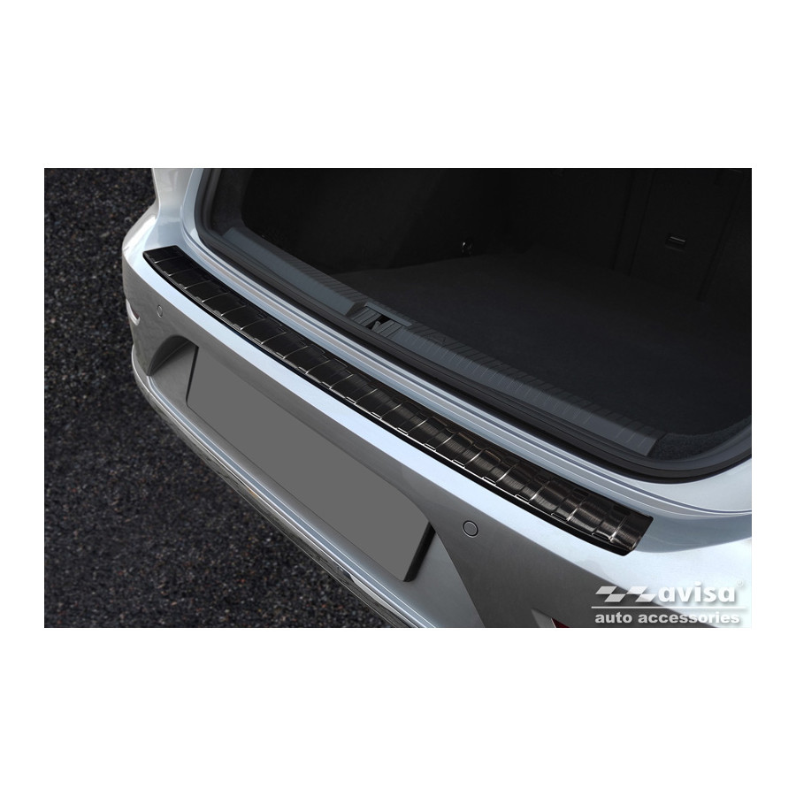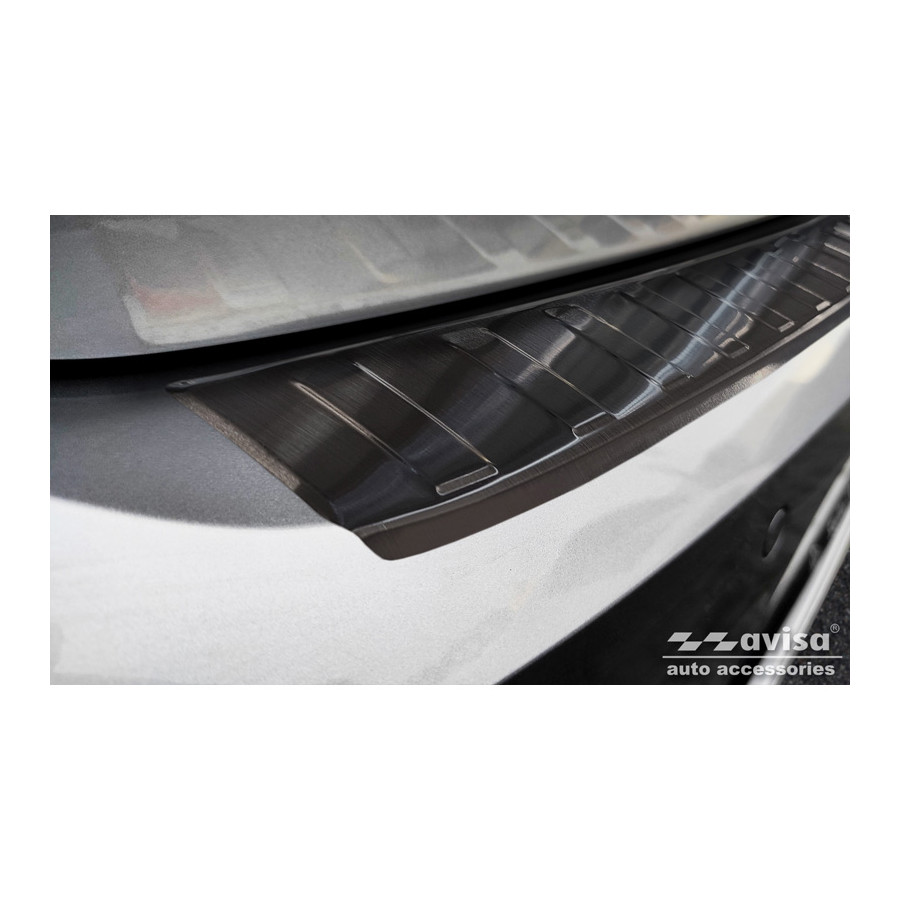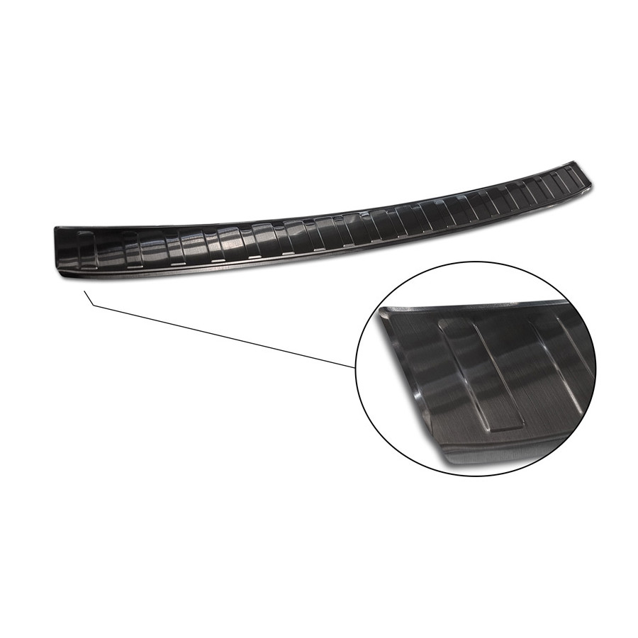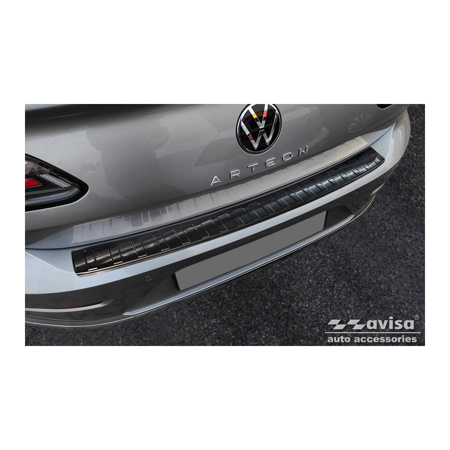 Black stainless steel rear bumper protector for the Volkswagen Arteon Shooting Brake 2020- 'Ribs'. Provide optimal protection against daily wear and tear on the top of the rear bumper. This part of the car is particularly susceptible to damage from loading and unloading. Repair and repainting costs are high, and the value of your car can decrease.
