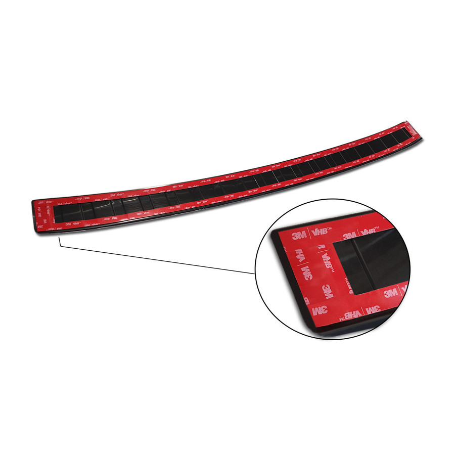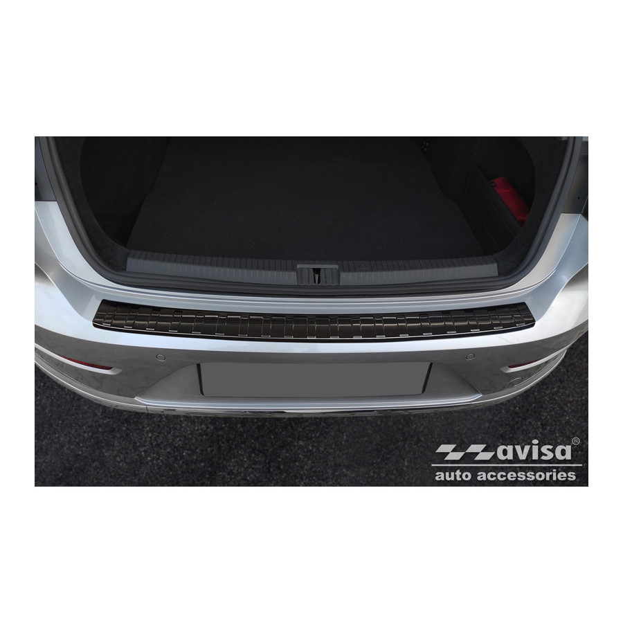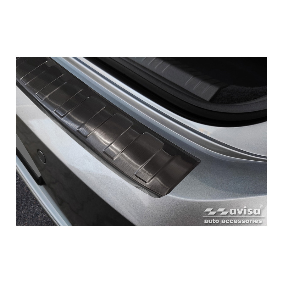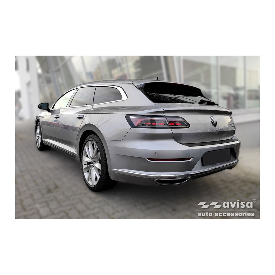 Black stainless steel rear bumper protector for the Volkswagen Arteon Shooting Brake 2020- 'Ribs'. Provide optimal protection against daily wear and tear on the top of the rear bumper. This part of the car is particularly susceptible to damage from loading and unloading. Repair and repainting costs are high, and the value of your car can decrease.