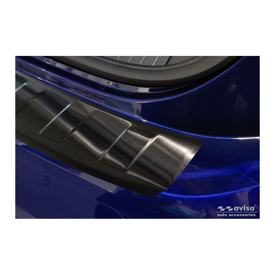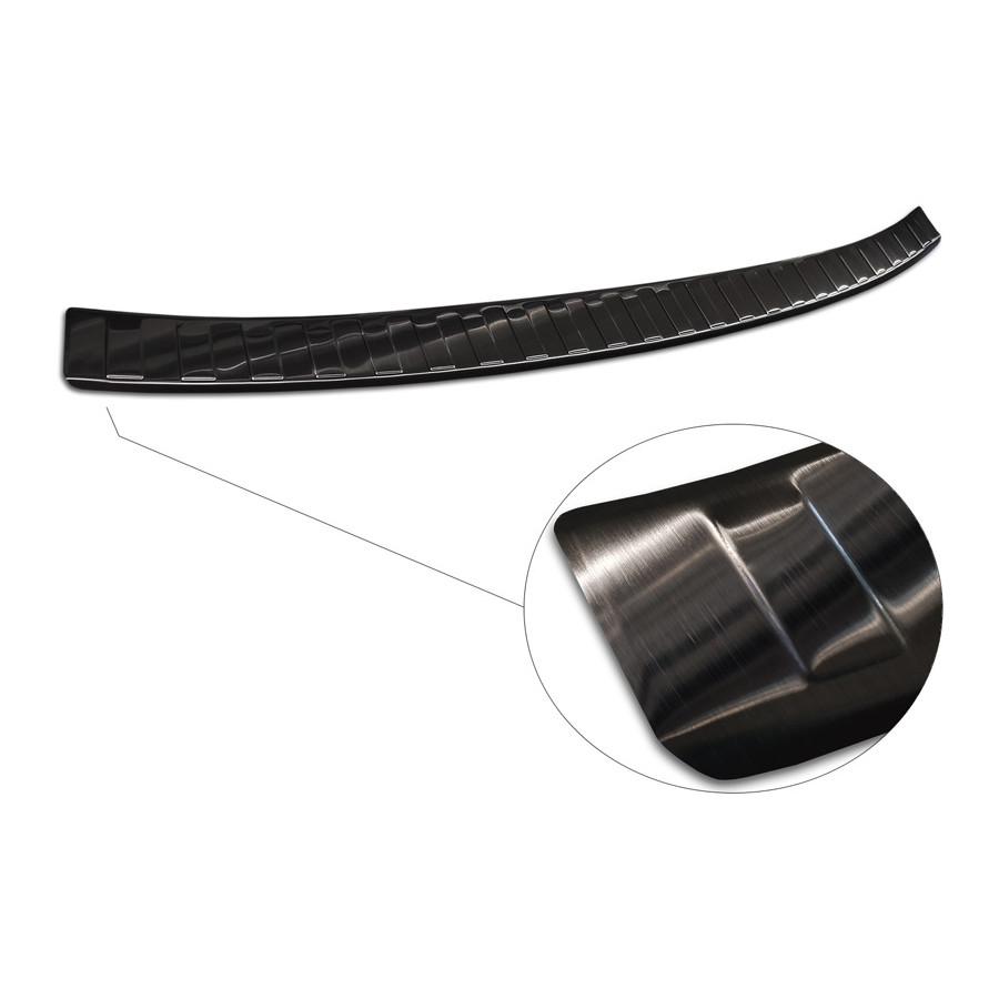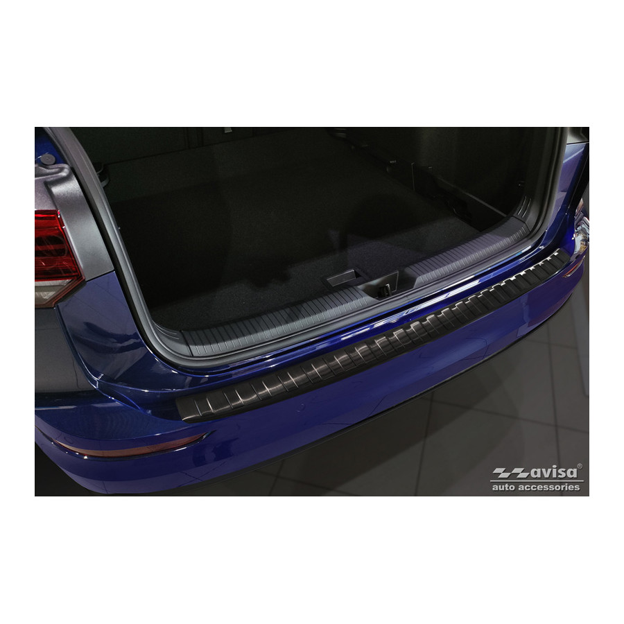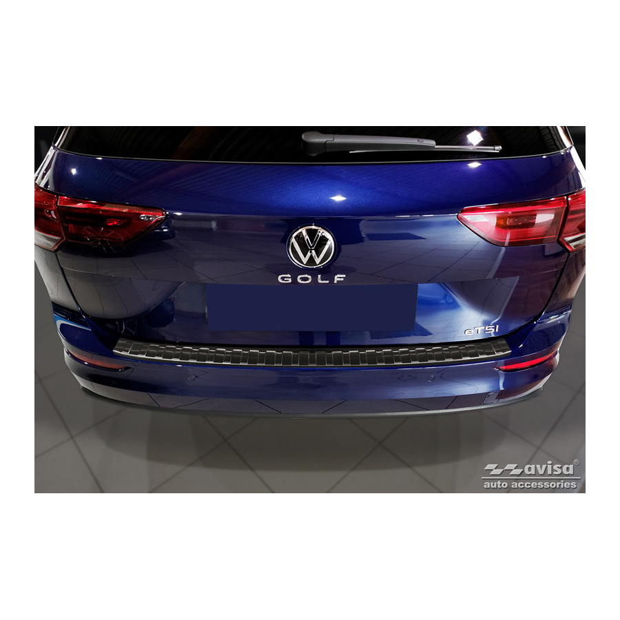 Black stainless steel rear bumper protector suitable for Volkswagen Golf VIII Estate 2020- "Ribs." Provide optimal protection against daily wear and tear on the top of the rear bumper. This part of the car is particularly susceptible to damage from loading and unloading. Repair and repainting costs are high, and the value of your car can decrease.
