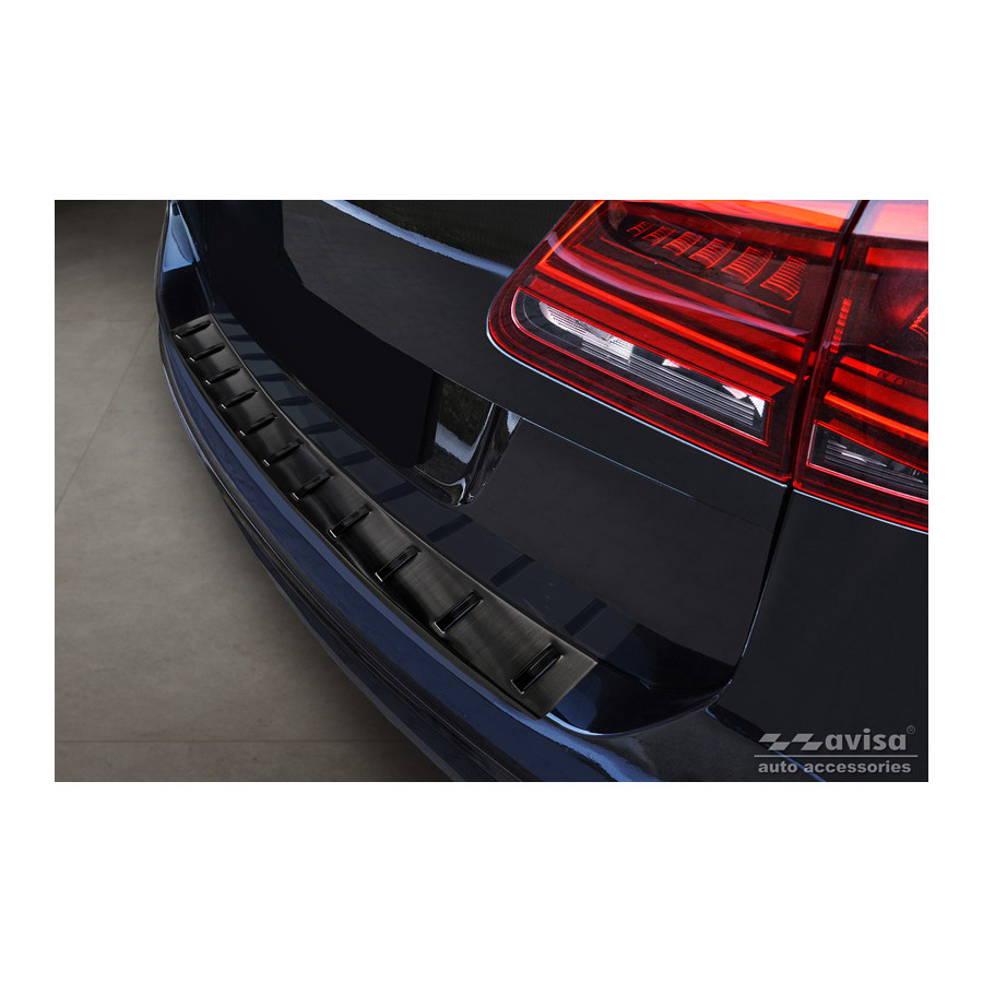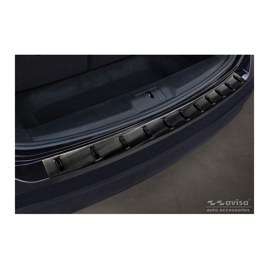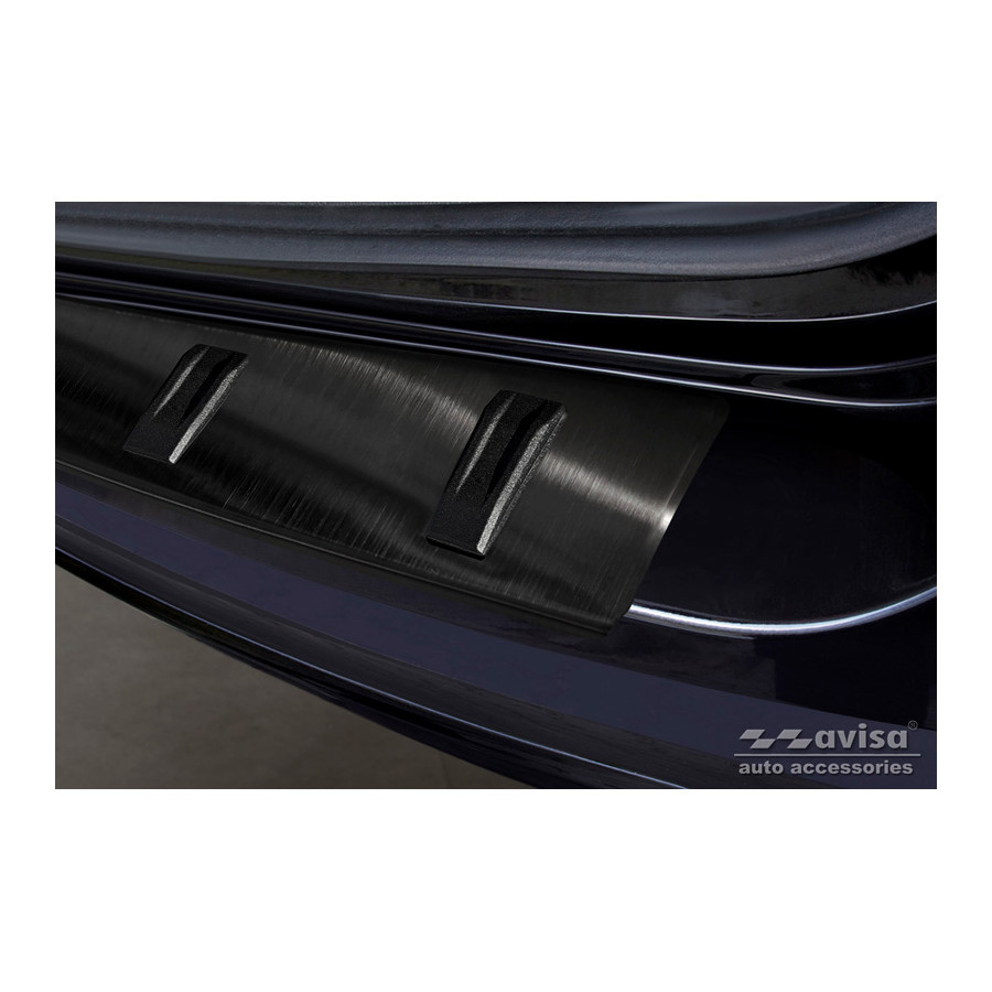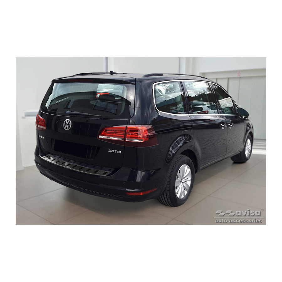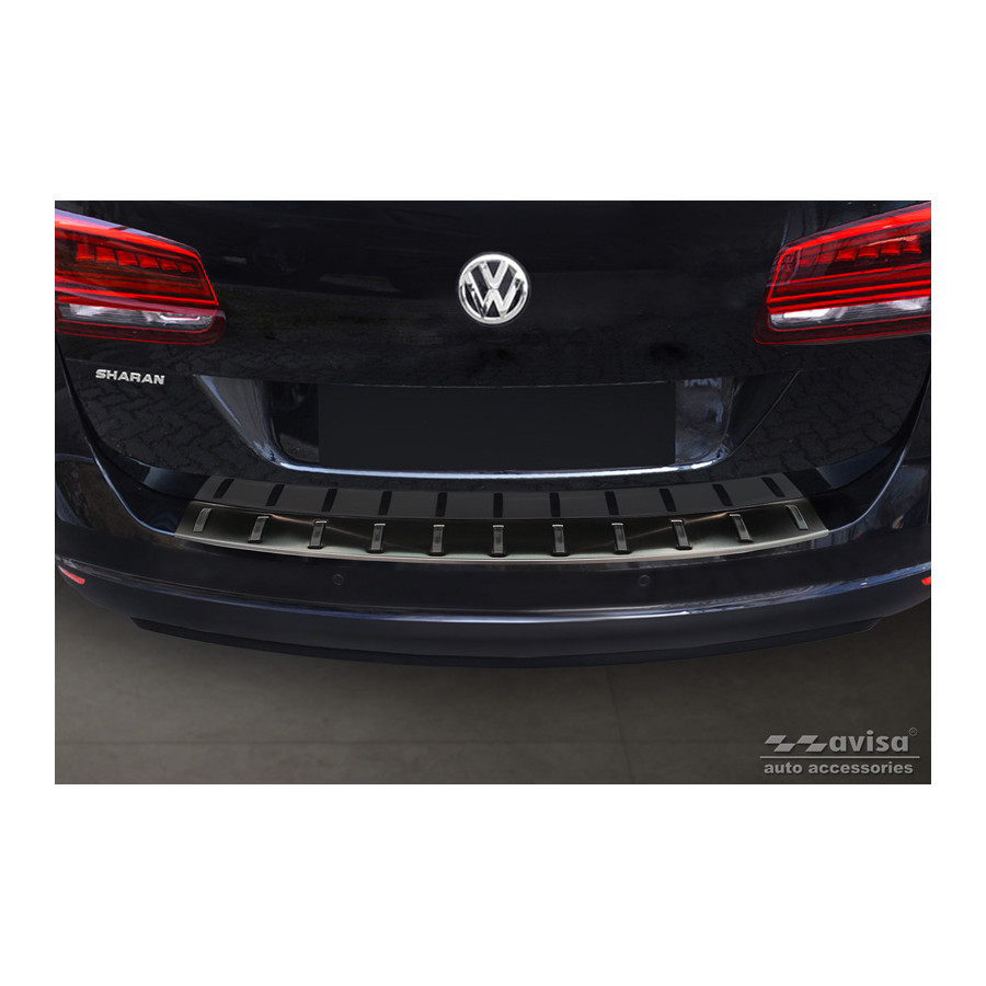 Black stainless steel rear bumper protector suitable for Volkswagen Sharan II & Seat Alhambra II 2010- 'STRONG EDITION'. Provide optimal protection against daily wear and tear on the top of your rear bumper. This part of the car is very susceptible to damage from loading and unloading. Repair and respray costs are high, and the value of your car can decrease. With a rear bumper protector, you can prevent damage to the top of your rear bumper. These are custom-made for your car and conform to your bumper, resulting in a perfect fit. Material: The Avisa 'STRONG EDITION' protectors are made of stainless steel combined with hardened polyurethane ribs, which not only provides protection but also gives your car a stylish appearance. The material is sturdy, durable, and weatherproof. This ensures the protector will last for years. With over 30 years of experience, Avisa is a leader in the design and production of these protectors. These are available in various colors and styles. Installation: These protectors are very easy to install. They are attached using double-sided 3M tape, which will not damage the original paint. This is included in the package, along with complete schematic installation instructions. Installation takes approximately 10 minutes. For a selection of rear bumper protectors that are attached directly to unpainted bumpers, a primer is included. The primer enhances the adhesive strength of the 3M tape.