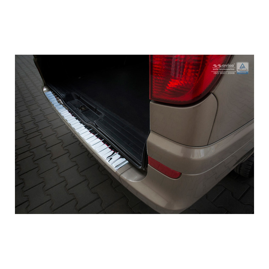 Mercedes Vito / Viano 2003-2014 Chrome stainless steel (powder-coated) rear bumper protector prevents damage to your car. Most cars are equipped with a painted rear bumper molding. For example, when loading items into the car, the top of the rear bumper is easily scratched. The rear bumper is very susceptible to damage, and repair and respray costs are high.