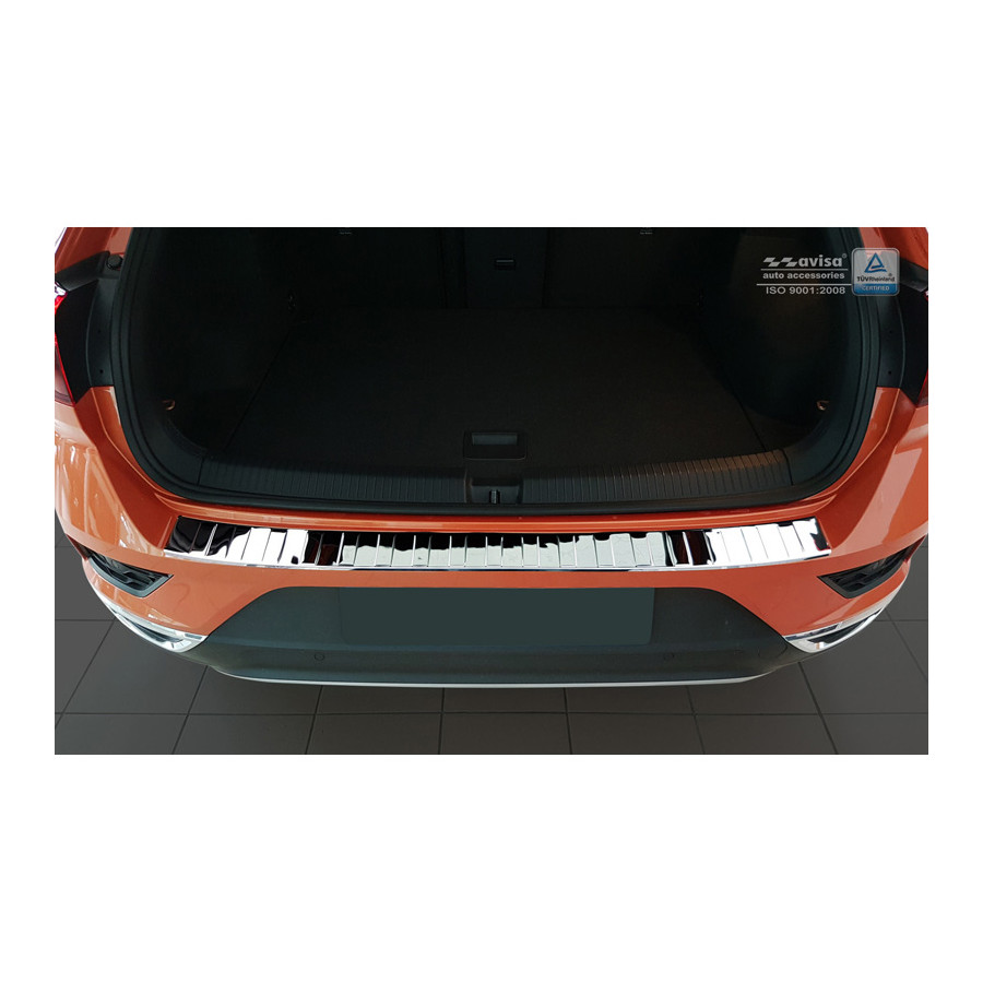 Volkswagen T-Roc 11/2017 - Chrome stainless steel (powder-coated) rear bumper protector prevents damage to your car. Most cars are equipped with a painted rear bumper molding. For example, when loading items into the car, the top of the rear bumper is easily scratched. The rear bumper is very susceptible to damage, and repair and respray costs are high.