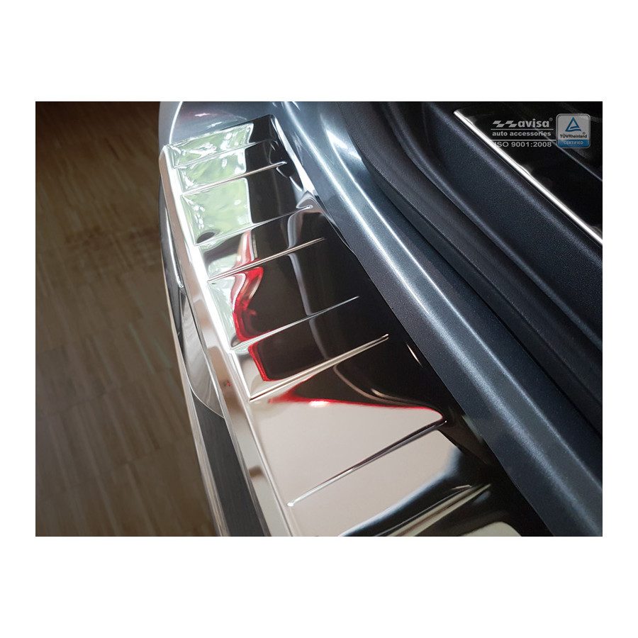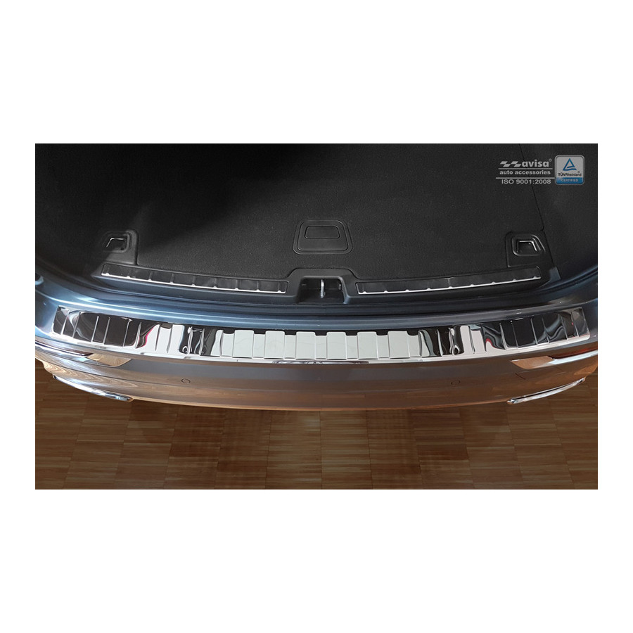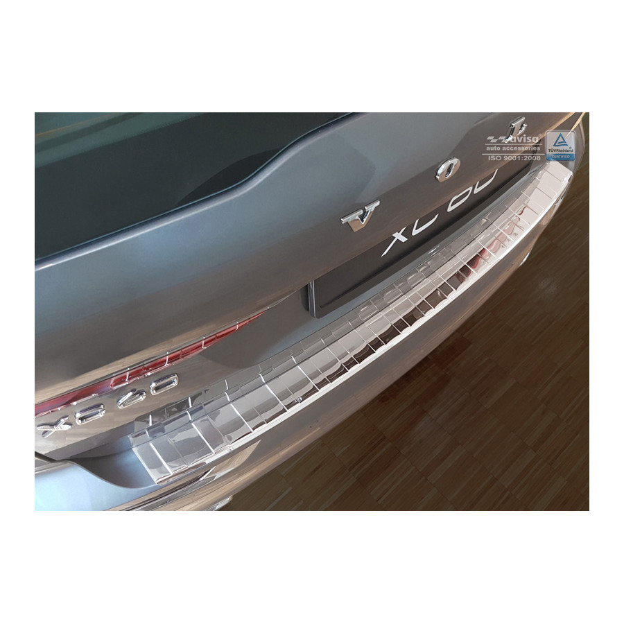 Volvo XC60 II 2017- Chrome stainless steel (powder coated) rear bumper protector prevents damage to your car. Most cars are equipped with a painted rear bumper molding. For example, if you load items into the car, the top of the rear bumper is easily scratched. The rear bumper is very sensitive to damage and the costs for repairs and respraying are high.