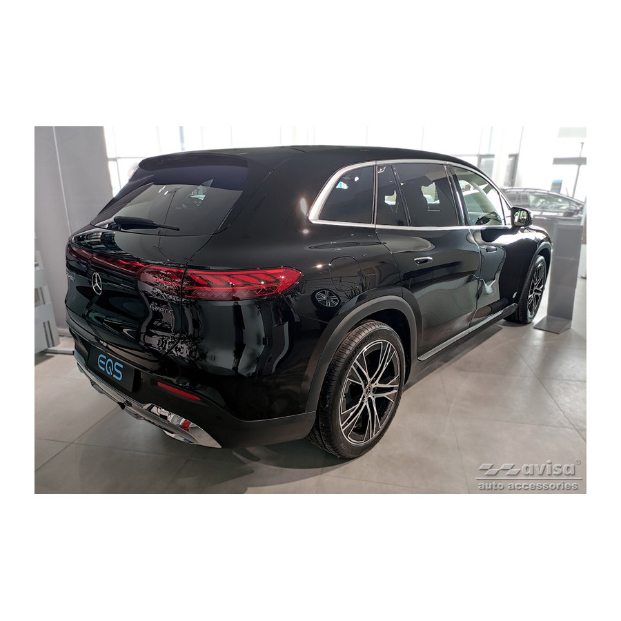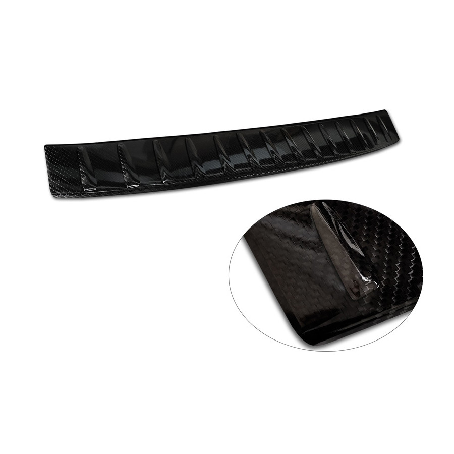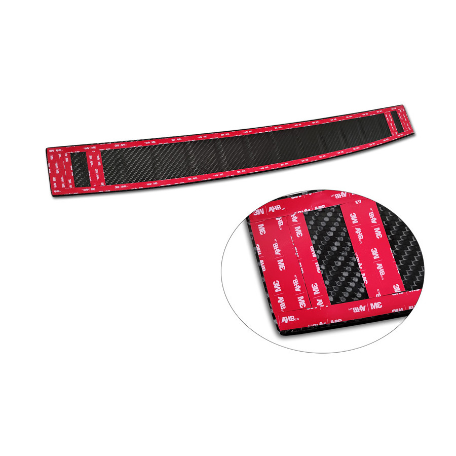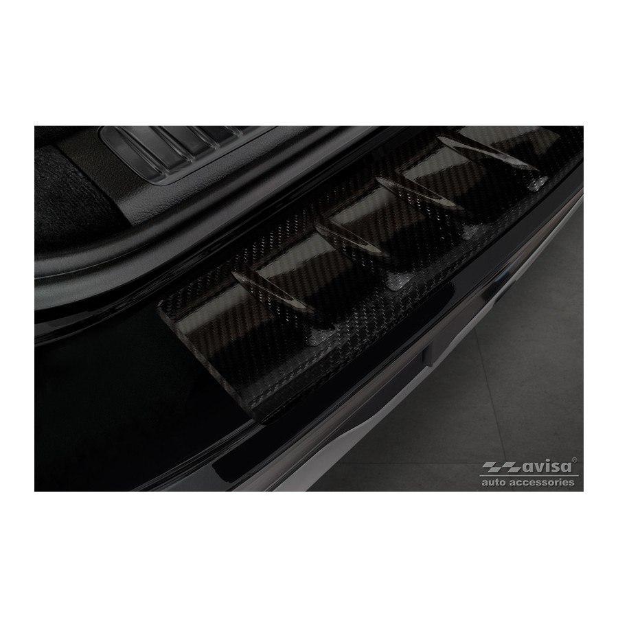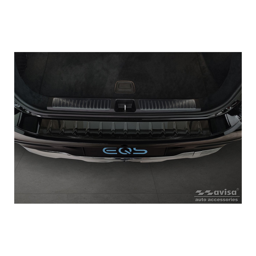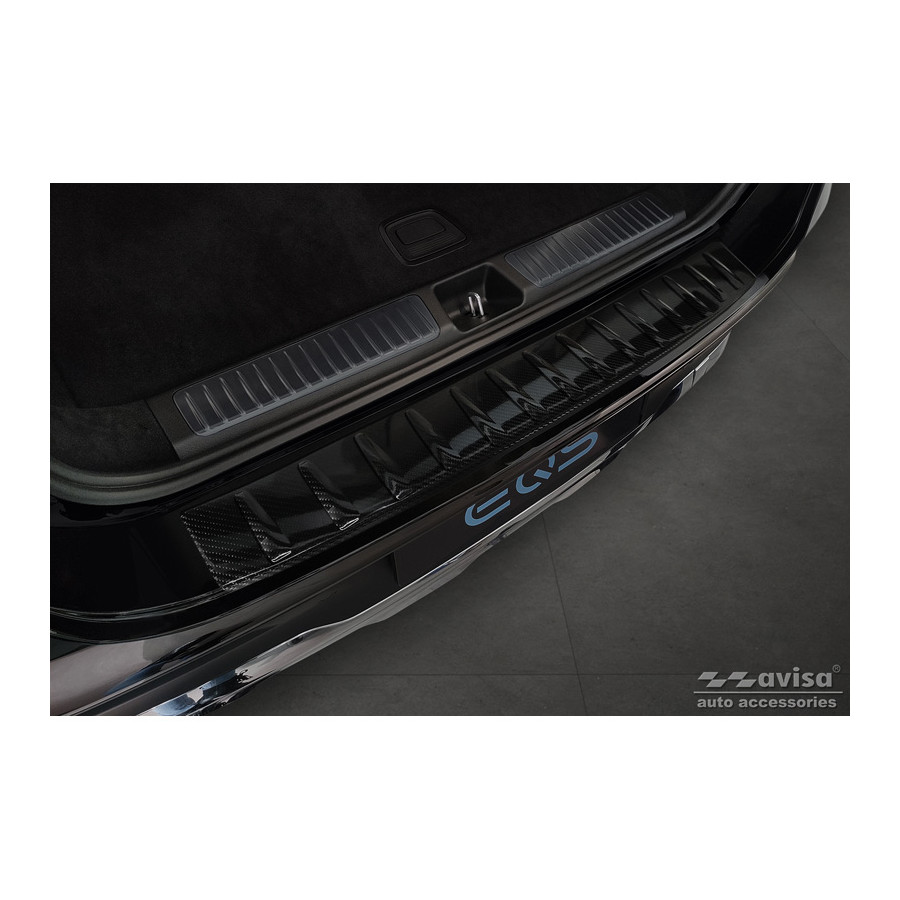 Genuine 3D Carbon Rear Bumper Protector suitable for Mercedes EQS SUV (X296) 2022- 'Ribs' Provide optimal protection against daily wear and tear on the top of the rear bumper. This part of the car is very sensitive to damage from loading and unloading. The costs for repairs and respraying are high, and the value of your car can decrease. A rear bumper protector prevents damage to the top of your rear bumper. These are custom-made for your car type and conform to the bumper of your car, resulting in a perfect fit. Material: These Avisa protectors are made of genuine 3D Carbon, which in addition to good protection also gives your car a sporty look. Due to its material properties, carbon fiber is very lightweight and also has good resistance to material fatigue; it can withstand pressure and continuous use. In addition, the durable material is designed in such a way that it is protected against UV radiation and does not discolour. This means that the molding will last for years in its original form. With over 30 years of experience, Avisa is a leader in the design and manufacture of these protective moldings. They are available in various colors and styles. Installation: These protective moldings are very easy to install. They are attached using double-sided 3M tape, which prevents damage to the original paint. This is included in the package, along with full schematic installation instructions. Installation takes approximately 10 minutes.