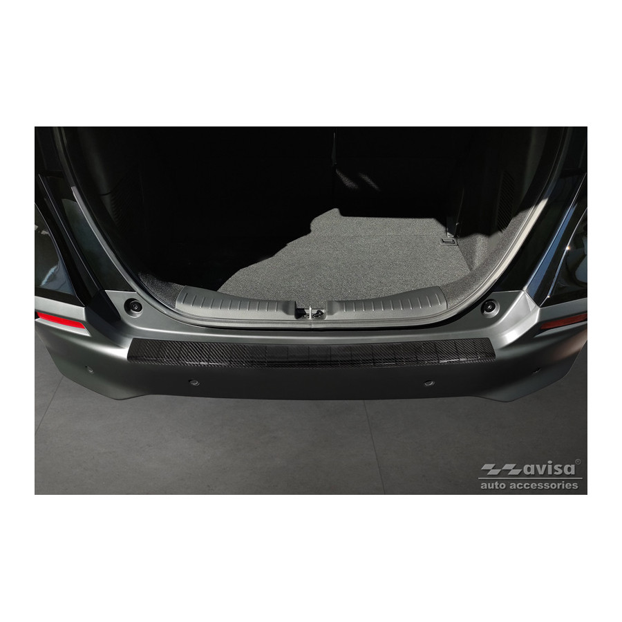 Genuine 3D Carbon Fiber Rear Bumper Protector, suitable for the Honda Jazz Crosstar Hybrid 2020 - 'Ribs'. Provide optimal protection against daily wear and tear on the top of your rear bumper. This part of the car is very susceptible to damage from loading and unloading. Repair and refinishing costs are high, and the value of your car can decrease. A rear bumper protector prevents damage to the top of your rear bumper. These are custom-made for your car and conform to your bumper, resulting in a perfect fit. Material: These Avisa protectors are made of genuine 3D carbon fiber, which not only provides good protection but also gives your car a sporty look. Due to its material properties, carbon fiber is very lightweight and also has good resistance to fatigue; it can withstand pressure and continuous use. In addition, this durable material is designed to protect against UV radiation and prevent discoloration. This ensures that the protector will last for years in its original form. With over 30 years of experience, Avisa is a leader in the design and manufacture of these protective moldings. They are available in various colors and styles. Installation: These protective moldings are very easy to install. They are attached using double-sided 3M tape, which prevents damage to the original paint. This is included in the package, along with full schematic installation instructions. Installation takes approximately 10 minutes.