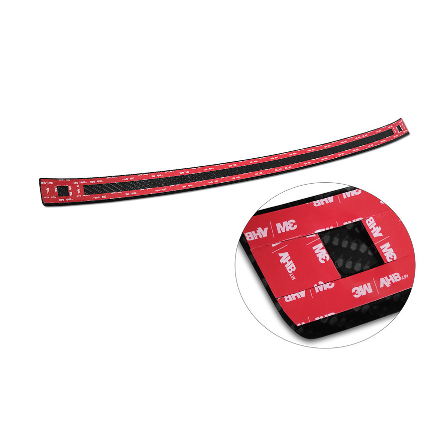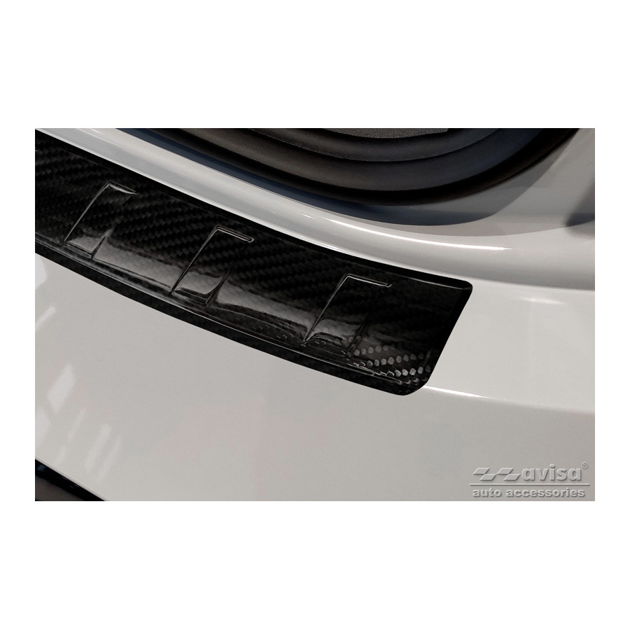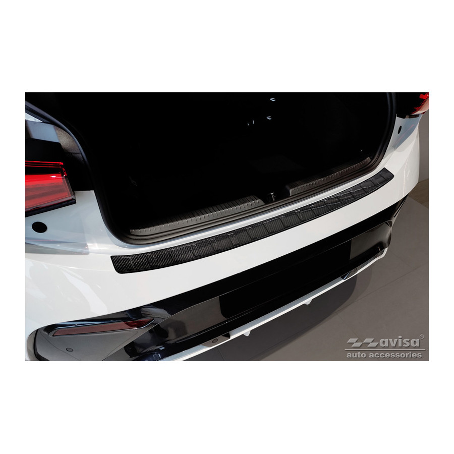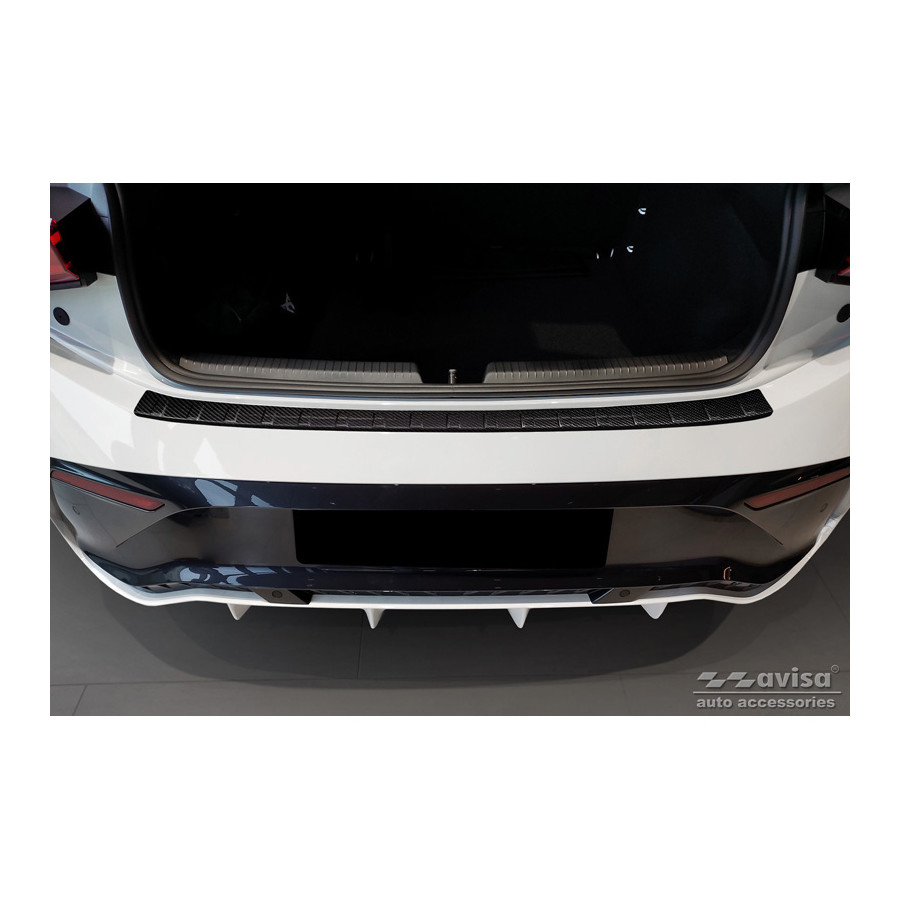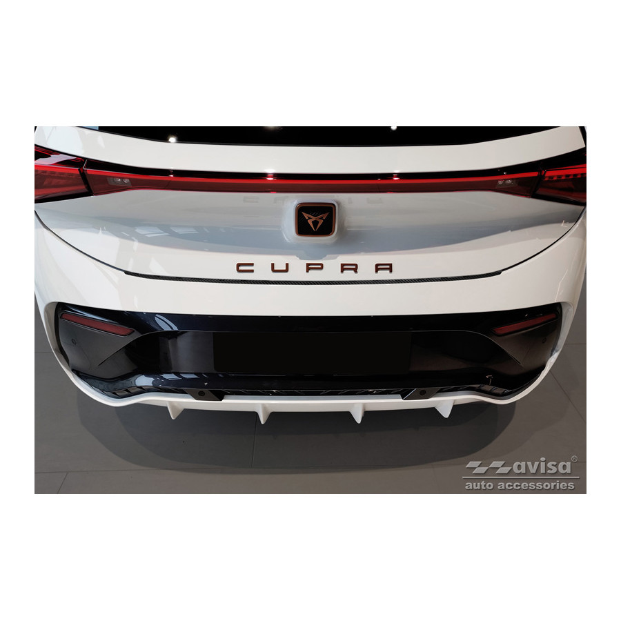 Genuine 3D Carbon Rear Bumper Protector suitable for Cupra Born 2021 - 'Ribs'. Provide optimal protection against daily wear and tear on the top of the rear bumper. This part of the car is very susceptible to damage from loading and unloading. Repair and repainting costs are high, and the value of your car can decrease. A rear bumper protector prevents damage to the top of your rear bumper. These are custom-made for your car and conform to your car's bumper, resulting in a perfect fit. Material: These Avisa protectors are made of genuine 3D carbon, which not only provides good protection but also gives your car a sporty look. Due to its material properties, carbon fiber is very lightweight and also has good resistance to fatigue; it can withstand pressure and continuous use. In addition, this durable material is designed to protect against UV radiation and prevent discoloration. This ensures that the protector will last for years in its original form. With over 30 years of experience, Avisa is a leader in the design and manufacture of these protective moldings. They are available in various colors and styles. Installation: These protective moldings are very easy to install. They are attached using double-sided 3M tape, which prevents damage to the original paint. This is included in the package, along with full schematic installation instructions. Installation takes approximately 10 minutes.