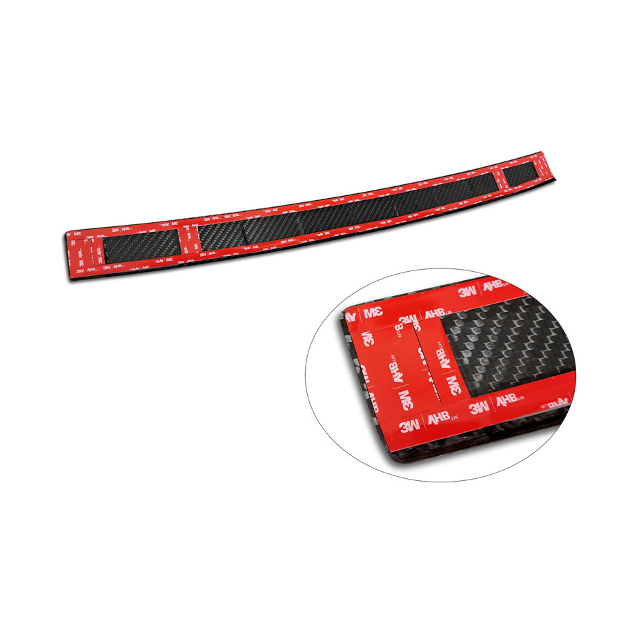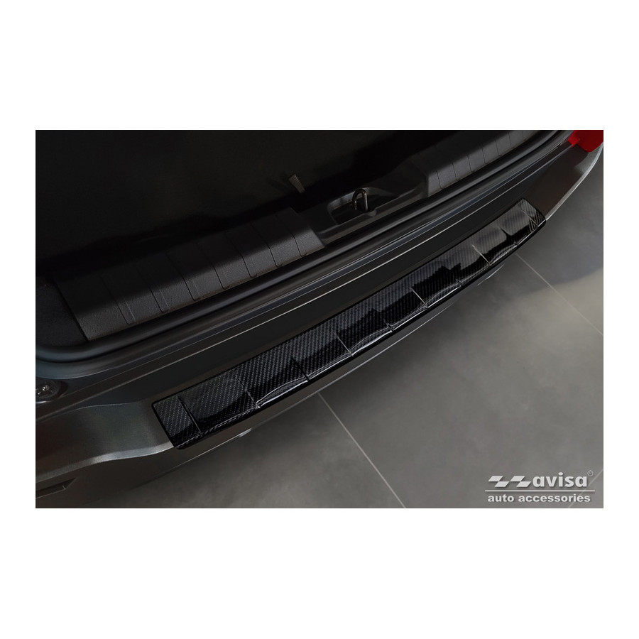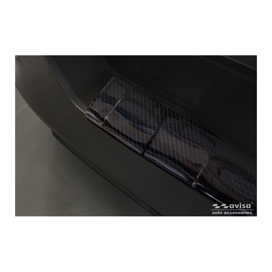 Genuine 3D Carbon Rear Bumper Protector suitable for Jeep Avenger + e-Hybrid & EV 2023 - 'Ribs' Provide optimal protection against daily wear and tear on the top of the rear bumper. This part of the car is very sensitive to damage caused by loading and unloading items. The costs for repairs and refinishing are high, and the value of your car can decrease. A rear bumper protection strip prevents damage to the top of your rear bumper. These are tailor-made for your type of car, and mold to the bumper of your car, resulting in a perfect fit. Material: These protective strips from Avisa are made of real 3D Carbon, which, in addition to good protection, also provides a sporty look to your car. Due to its material properties, Carbon Fiber is very lightweight and also has good resistance to material fatigue; it can withstand pressure and continuous use well. In addition, the durable material is designed in such a way that it is protected against UV radiation and does not discolour. This means the frame will last for years in its original form. With more than 30 years of experience, Avisa is a leader in the design and production of these protective frames. These are available in different colors and styles. Assembly: These protective strips are very easy to assemble. They are attached using double-sided 3M tape, which does not damage the original paint. This is included in the package, as are full schematic assembly instructions. The installation takes approximately 10 minutes.