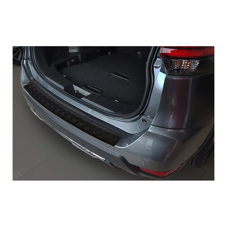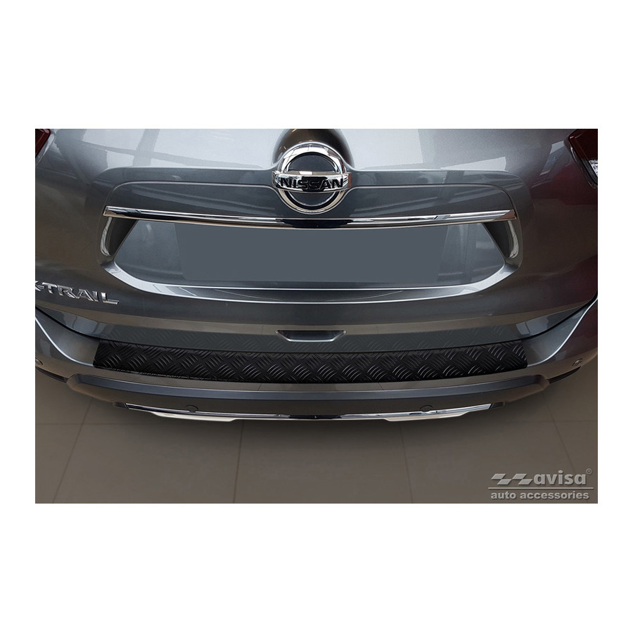 Matte Black Aluminium Rear Bumper Protector suitable for Nissan X-Trail III (T32) Facelift 2017-2021 'Riffled Plate'Provide optimal protection against daily wear and tear on the top of the rear bumper. This part of the car is very sensitive to damage from loading and unloading. Repair and respraying costs are high, and the value of your car can decrease.