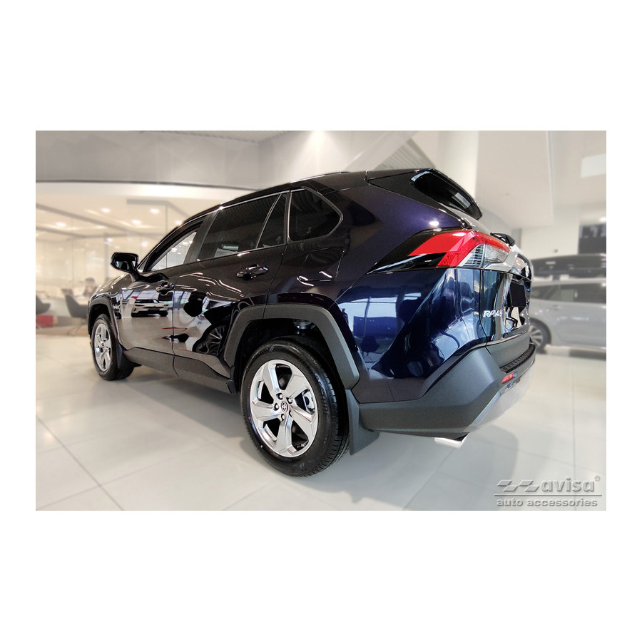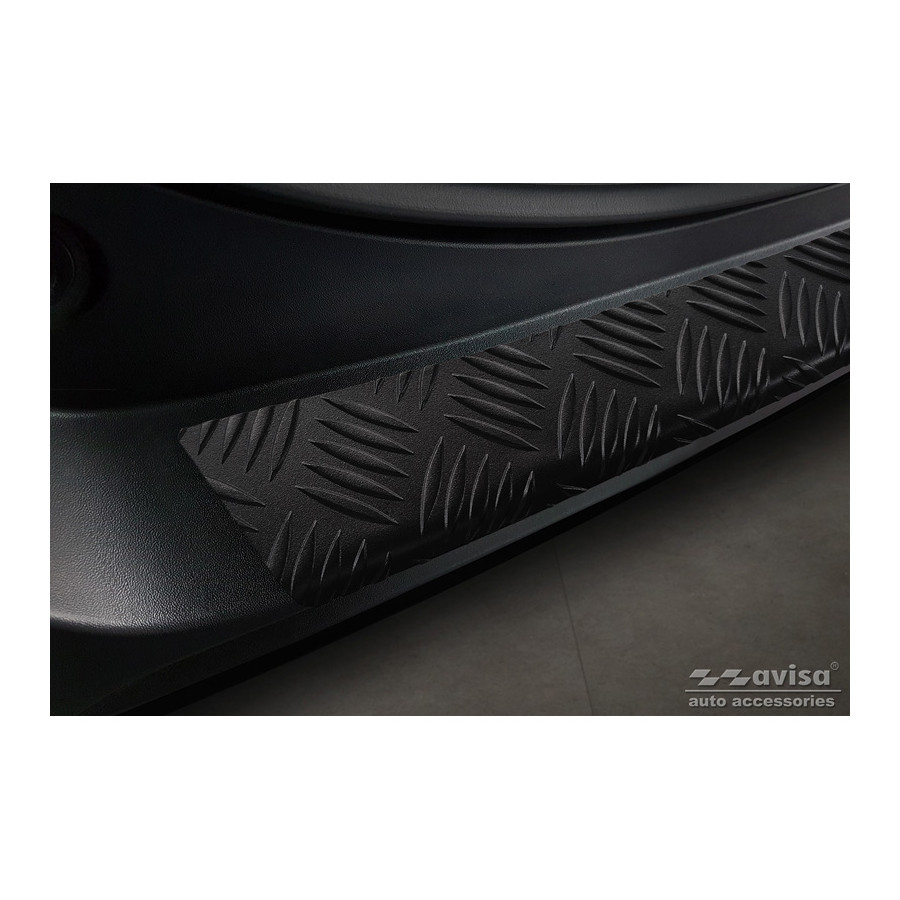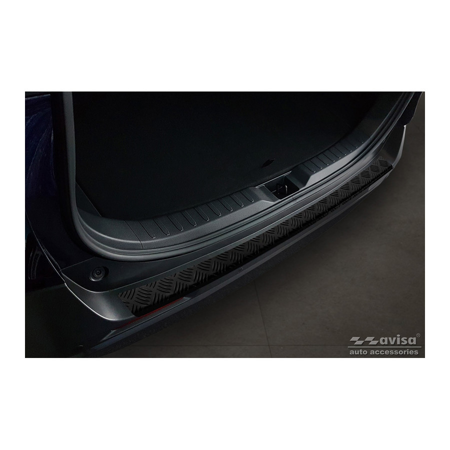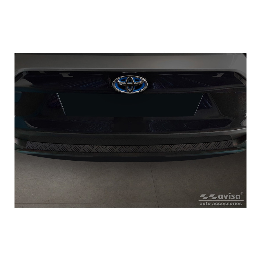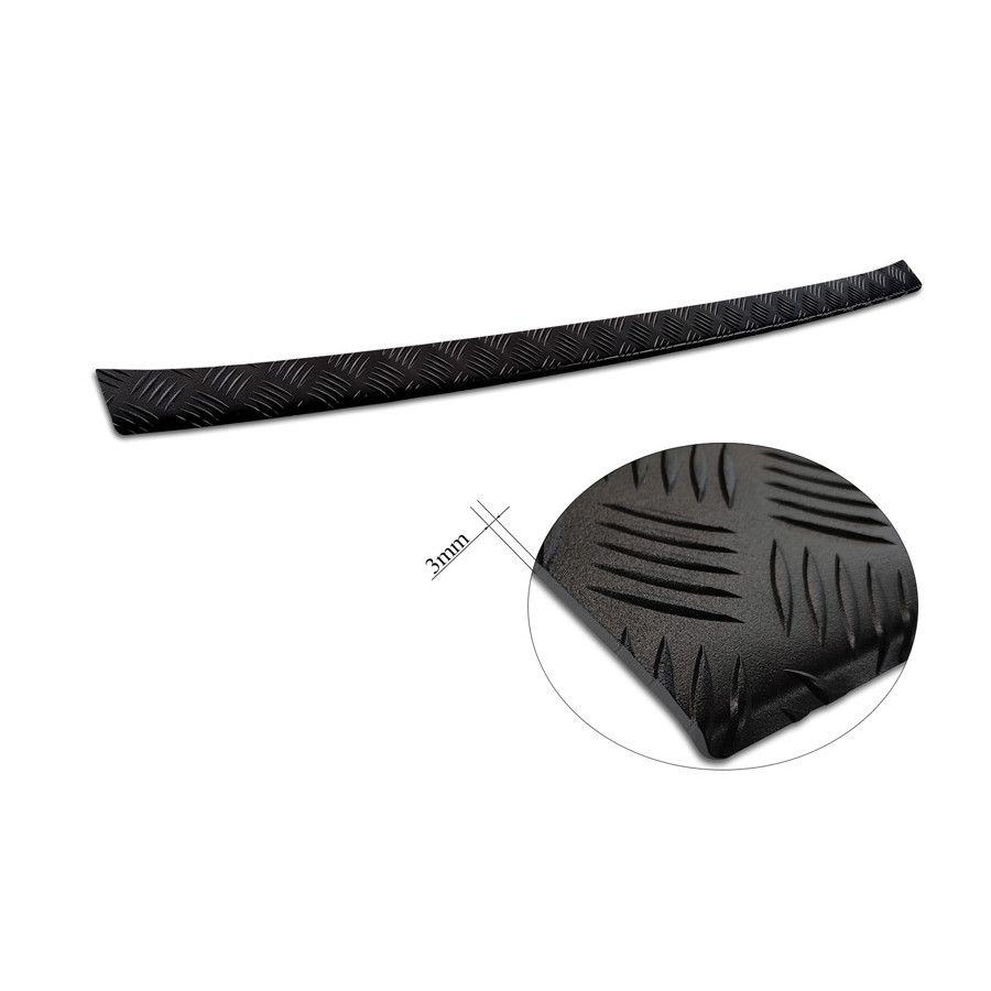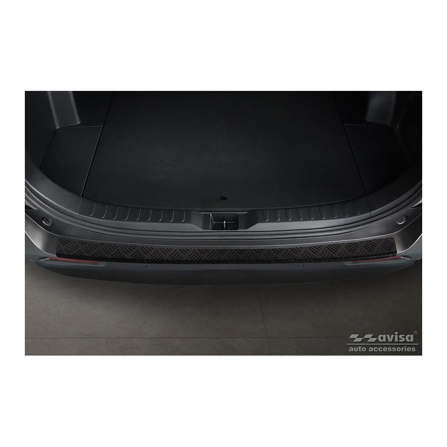 Matte Black Aluminum Rear Bumper Protector suitable for Toyota RAV4 (5th Gen.) 2018- & Suzuki Across 2020- 'Riffled Plate'. Provides optimal protection against daily wear and tear on the top of the rear bumper. This part of the car is particularly susceptible to damage from loading and unloading. Repair and repainting costs are high, and the value of your car can decrease.