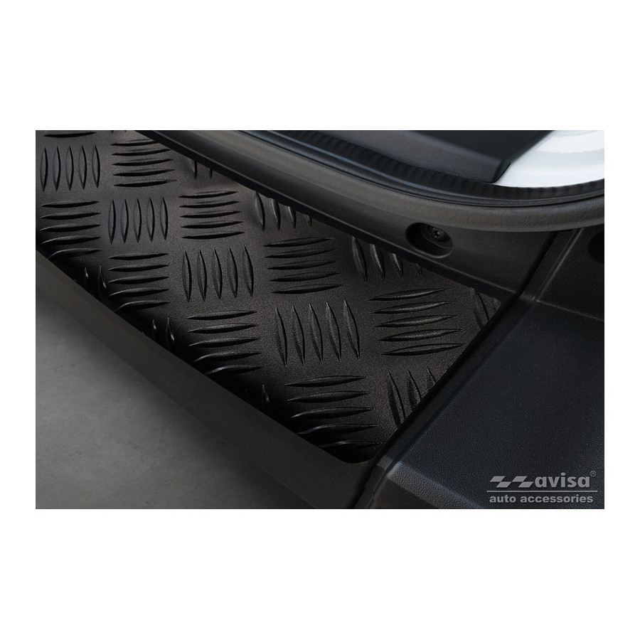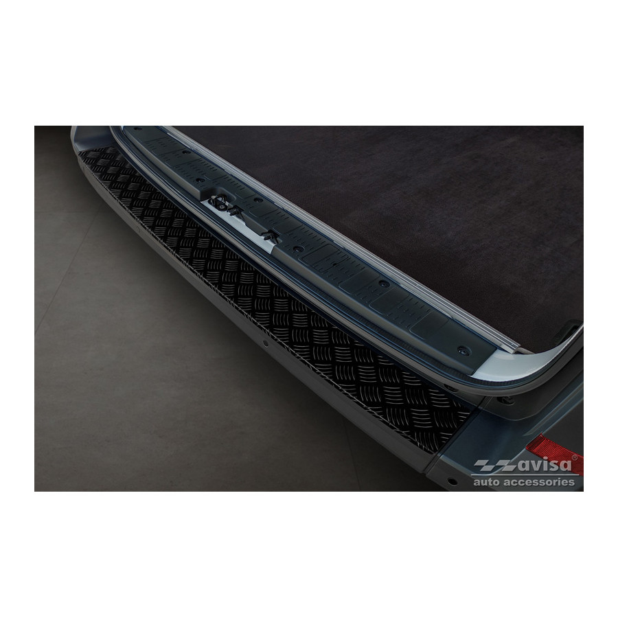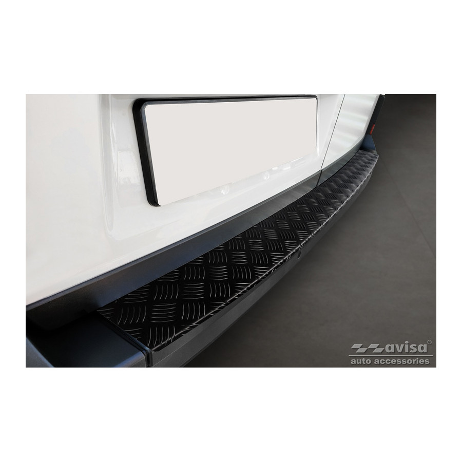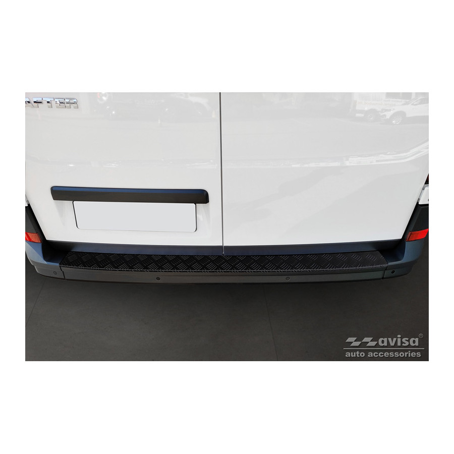 Matte Black Aluminum Rear Bumper Protector suitable for Volkswagen Crafter & MAN TGE 2017- 'Riffled'. Provides optimal protection against daily wear and tear on the top of the rear bumper. This part of the car is particularly susceptible to damage from loading and unloading. Repair and repainting costs are high, and the value of your car can decrease.