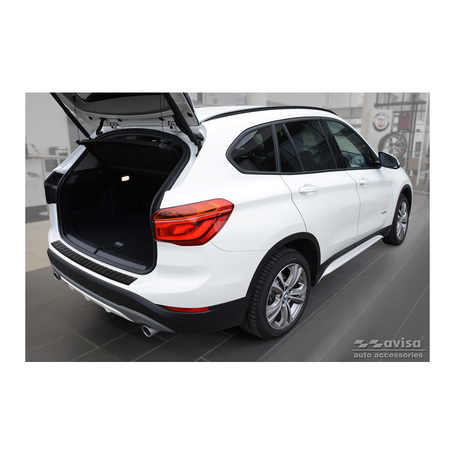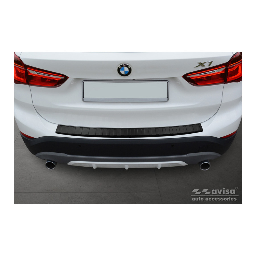 Matte Black Stainless Steel Rear Bumper Protector suitable for BMW X1 (F48) 2015-2022 'Ribs'Provide optimal protection against daily wear and tear on the top of the rear bumper. This part of the car is very sensitive to damage from loading and unloading items. Repair and respraying costs are high, and the value of your car can decrease.