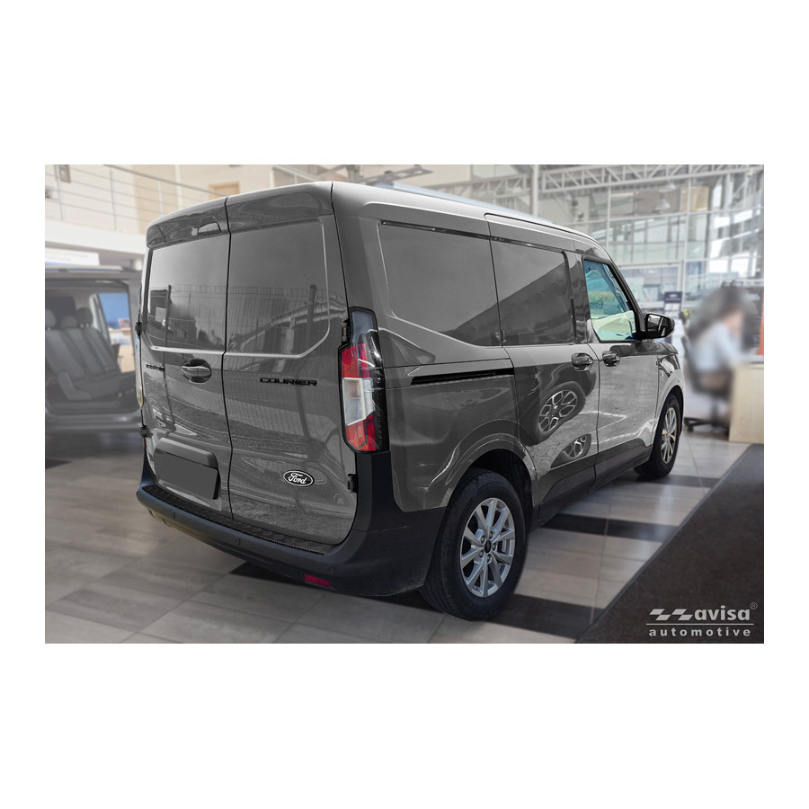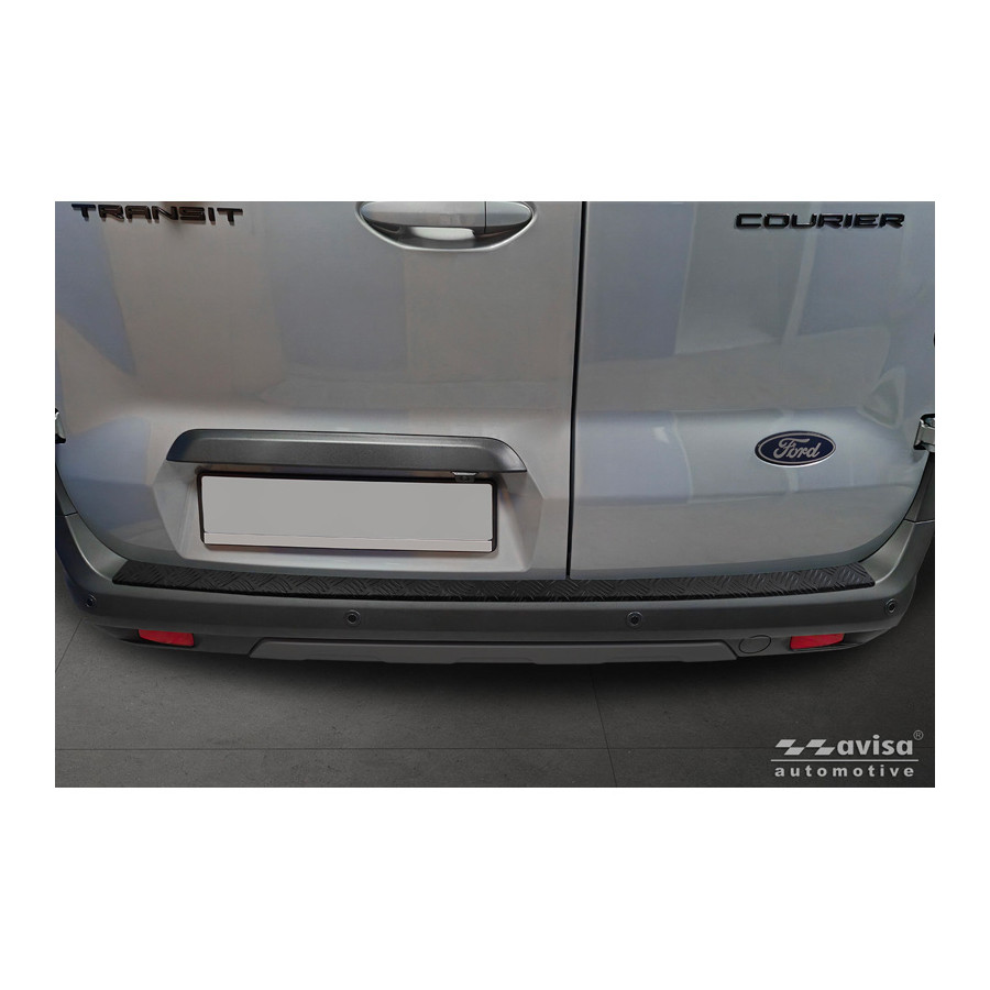 Matte Black Stainless Steel Rear Bumper Protector Fits Ford Transit Courier II / Tourneo Courier II 2023- 'Riffled Plate'