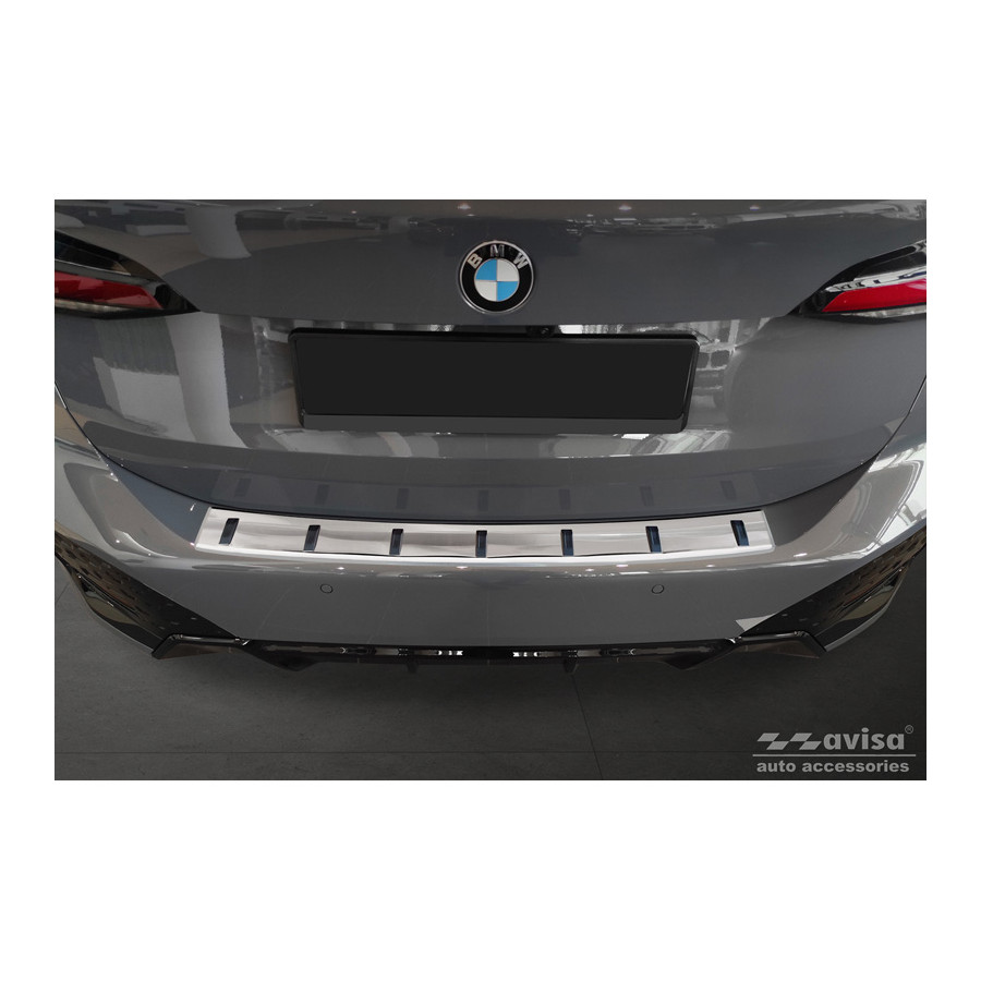 Stainless steel rear bumper protector suitable for BMW 2 Series (U06) Active Tourer (incl. M-Package) 2021- 'STRONG EDITION'. Provide optimal protection against daily wear and tear on the top of your rear bumper. This part of the car is very susceptible to damage from loading and unloading. Repair and respray costs are high, and the value of your car can decrease. With a rear bumper protector, you can prevent damage to the top of your rear bumper. These are custom-made for your car and conform to the bumper of your car, resulting in a perfect fit. Material: The Avisa 'STRONG EDITION' protectors are made of stainless steel combined with hardened polyurethane ribs, which not only provides protection but also gives your car a stylish look. The material is strong, durable, and resistant to all weather conditions. This ensures the molding will last for years. With over 30 years of experience, Avisa is a leader in the design and production of these moldings. They are available in various colors and styles. Installation: These moldings are very easy to install. They are attached using double-sided 3M tape, which will not damage the original paint. This is included in the package, along with complete schematic installation instructions. Installation takes approximately 10 minutes. For a selection of rear bumper protectors that are attached directly to unpainted bumpers, a primer is included. The primer enhances the strength of the 3M tape.