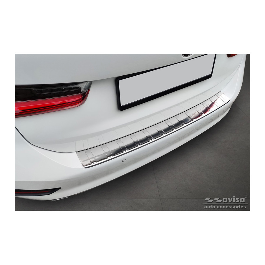 Stainless steel rear bumper protector suitable for BMW 3 Series G21 Touring 2019-2022 "Ribs". Provide optimal protection against daily wear and tear on the top of the rear bumper. This part of the car is particularly susceptible to damage from loading and unloading. Repair and repainting costs are high, and the value of your car can decrease.