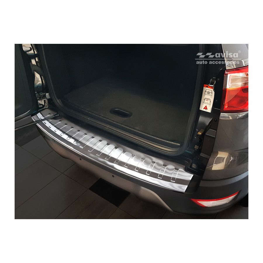 Ford Ecosport II Facelift 2017 - Stainless steel rear bumper protector prevents damage to your car. Most cars are equipped with a painted rear bumper molding. For example, when loading items into the car, the top of the rear bumper is easily scratched. The rear bumper is very susceptible to damage, and repair and respray costs are high.