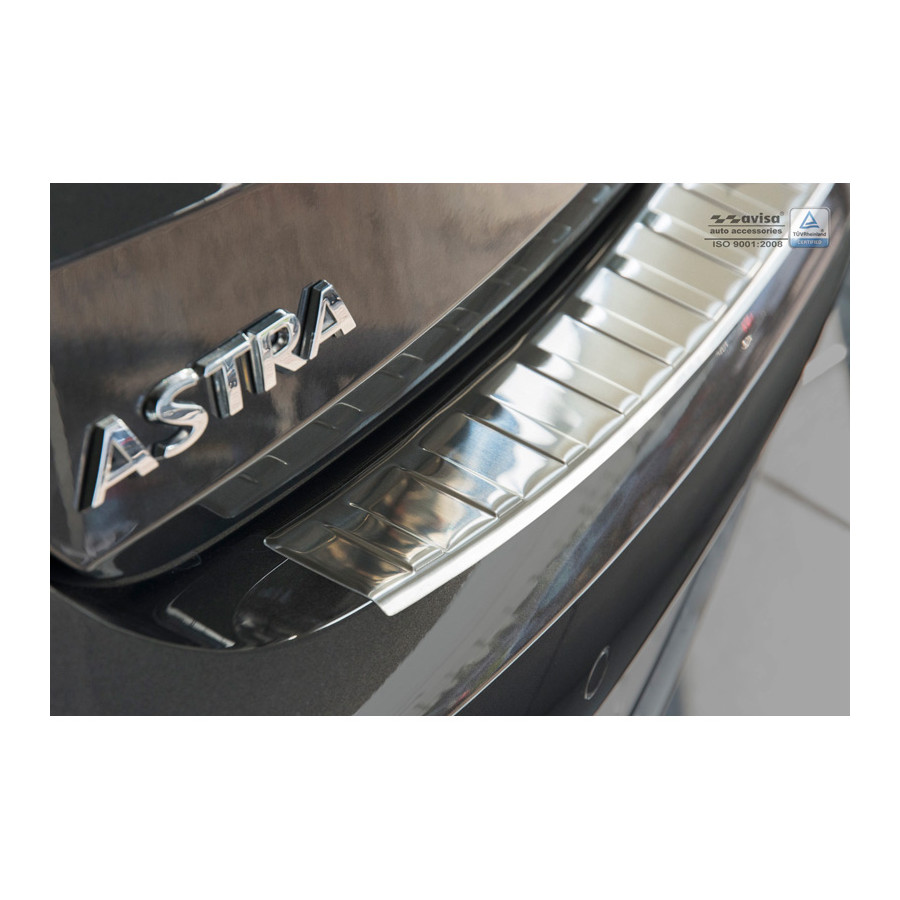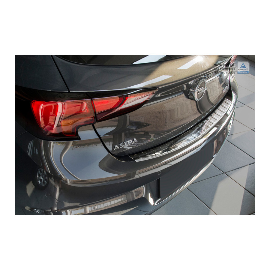 Opel Astra K HB 5-door 2015- Stainless steel rear bumper protectors prevent damage to your car. Most cars are equipped with a painted rear bumper molding. For example, when loading items into the car, the top of the rear bumper is easily scratched. The rear bumper is very susceptible to damage, and repair and respray costs are high.