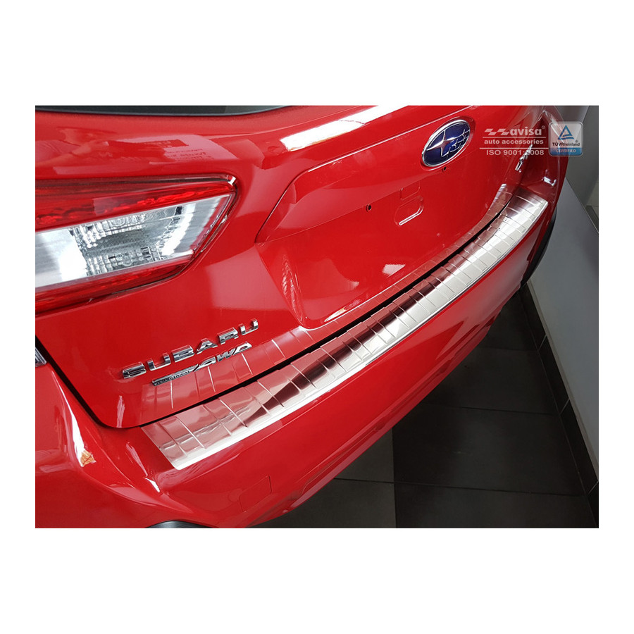 Subaru XV II 2017- Stainless steel rear bumper protector prevents damage to your car. Most cars are equipped with a painted rear bumper molding. For example, if you load items into the car, the top of the rear bumper is easily scratched. The rear bumper is very sensitive to damage and the costs for repair and respraying are high.