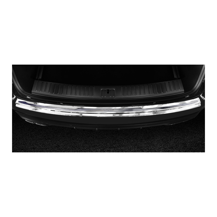Stainless Steel Rear Bumper Protector 'Deluxe' Porsche Cayenne III 2017- 'Performance' Silver/Silver Carbon. Provide optimal protection against daily wear and tear on the top of your rear bumper. This part of the car is very susceptible to damage from loading and unloading. Repair and respray costs are high, and the value of your car can decrease. A rear bumper protector prevents damage to the top of your rear bumper. These are custom-made for your car and conform to your bumper, resulting in a perfect fit. Material: These Avisa protectors, made from a combination of genuine carbon fiber and stainless steel, create a unique design that not only provides protection but also gives your car a sporty and elegant look. Due to its material properties, carbon fiber has good resistance to fatigue; it can withstand pressure and continuous use. In addition, this durable material is designed to protect against UV radiation and prevent discoloration. This ensures that the protector will last for years in its original form. With over 30 years of experience, Avisa is a leader in the design and manufacture of these protective moldings. They are available in various colors and styles. Installation: These protective moldings are very easy to install. They are attached using double-sided 3M tape, which prevents damage to the original paint. This is included in the package, along with full schematic installation instructions. Installation takes approximately 10 minutes.