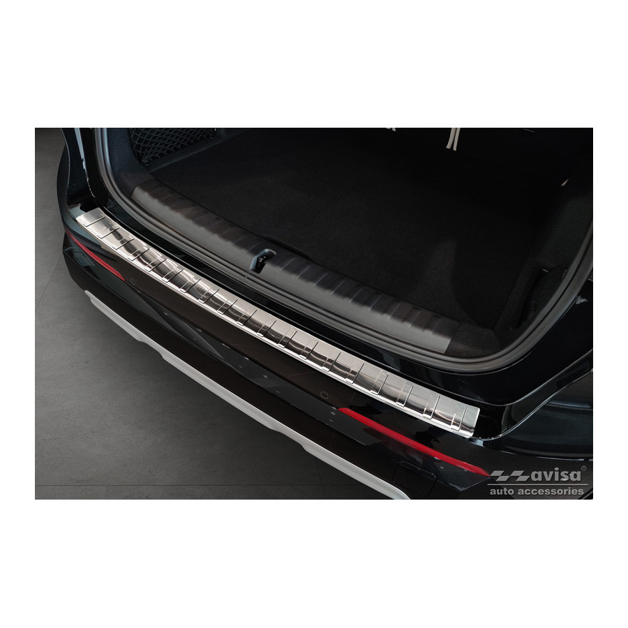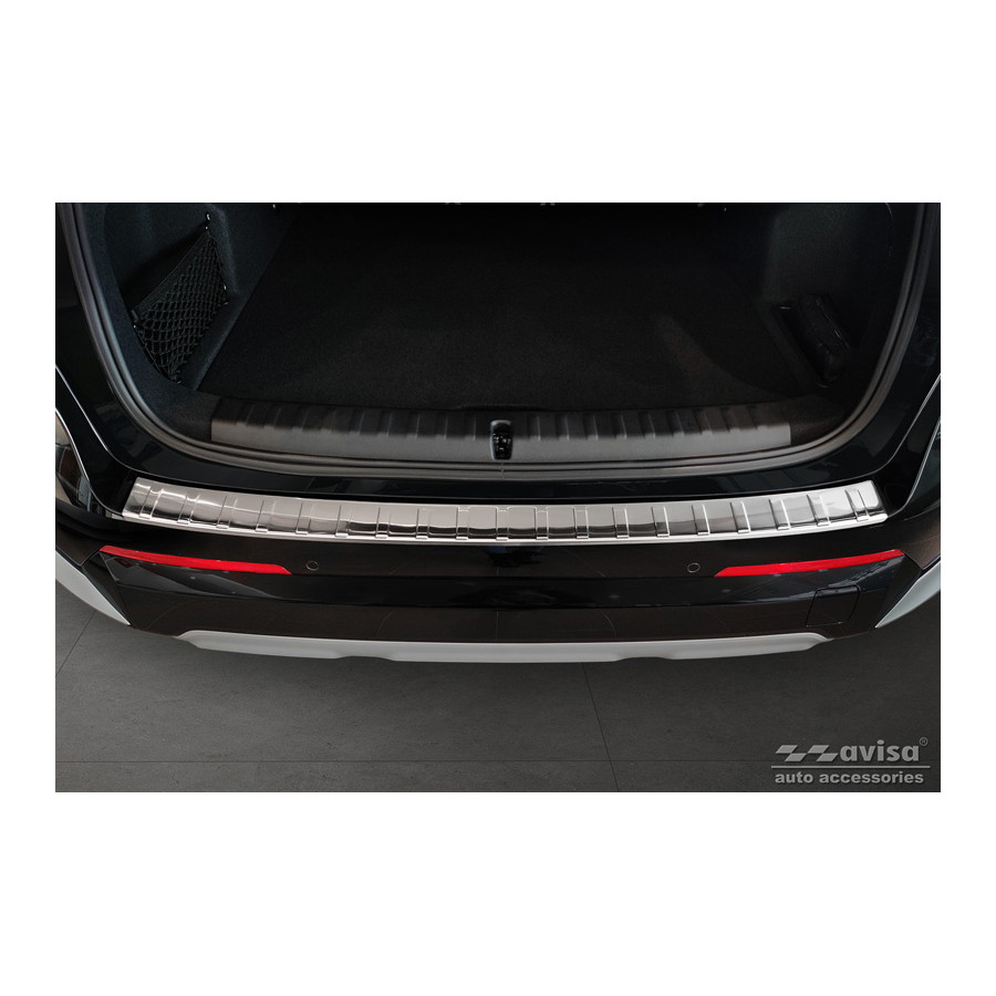 Stainless steel Rear bumper protector suitable for BMW X1 U11 2022- 'Ribs'Provide optimal protection against daily wear and tear on the top of the rear bumper. This part of the car is very sensitive to damage from loading and unloading. The costs for repairs and respraying are high, and the value of your car can decrease.