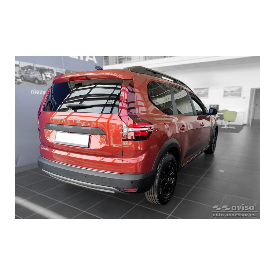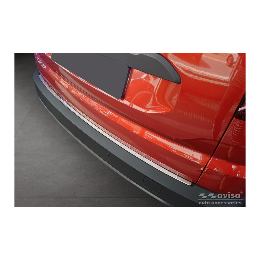 Stainless steel rear bumper protector suitable for Dacia Jogger 2022- 'Ribs'. Provide optimal protection against daily wear and tear on the top of the rear bumper. This part of the car is very susceptible to damage from loading and unloading. Repair and repainting costs are high, and the value of your car can decrease.