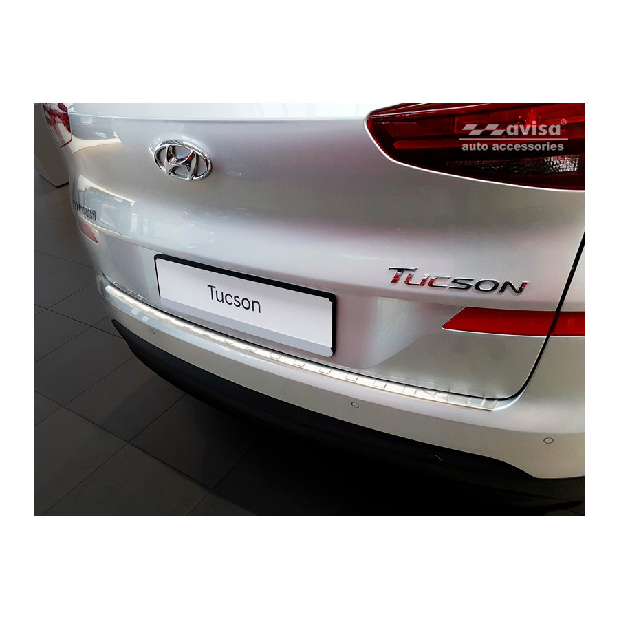 Stainless Steel Rear Bumper Protector Hyundai Tucson FL 2018-'Ribs' Provide optimal protection against daily wear on the top of the rear bumper. This part of the car is very susceptible to damage from loading and unloading items. Repair and refinishing costs are high, and the value of your car may drop.
