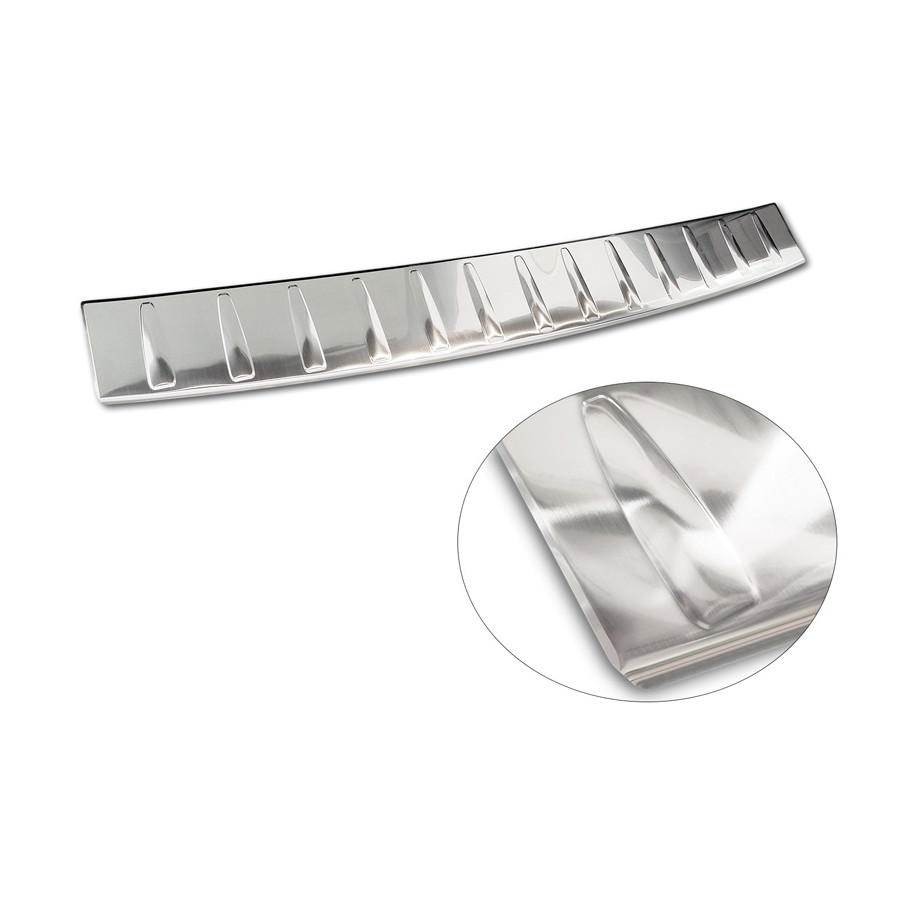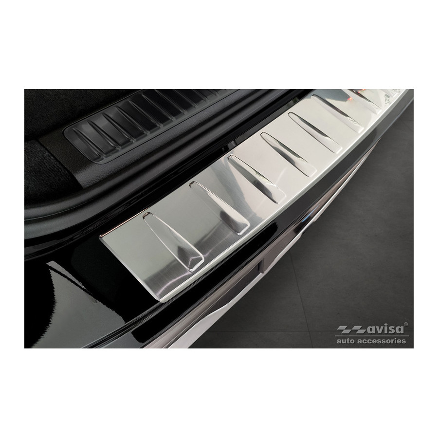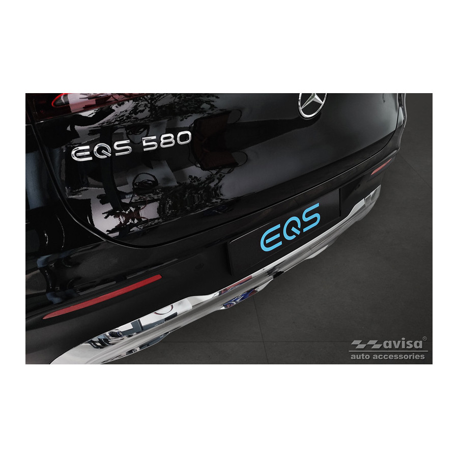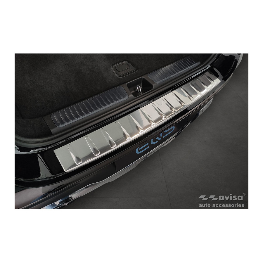 Stainless steel Rear bumper protector suitable for Mercedes EQS SUV (X296) 2022- 'Ribs'Provide optimal protection against daily wear and tear on the top of the rear bumper. This part of the car is very sensitive to damage from loading and unloading. The costs for repairs and respraying are high, and the value of your car can decrease.