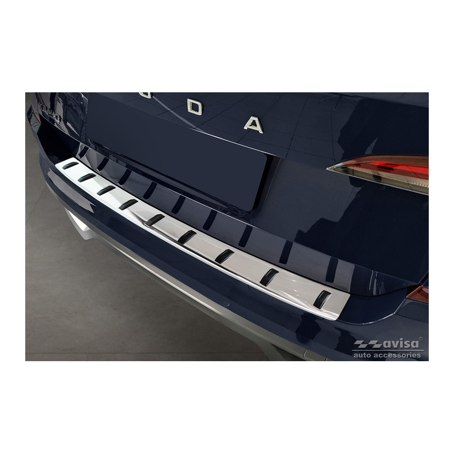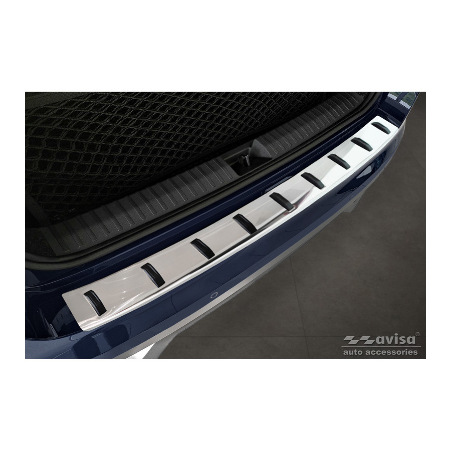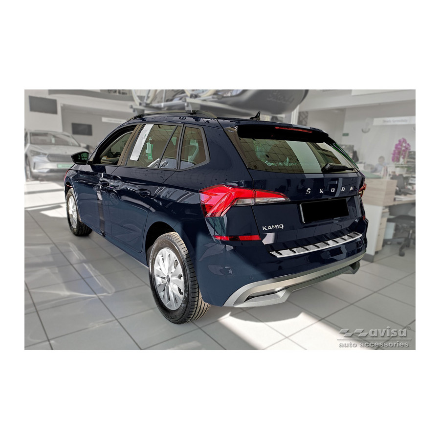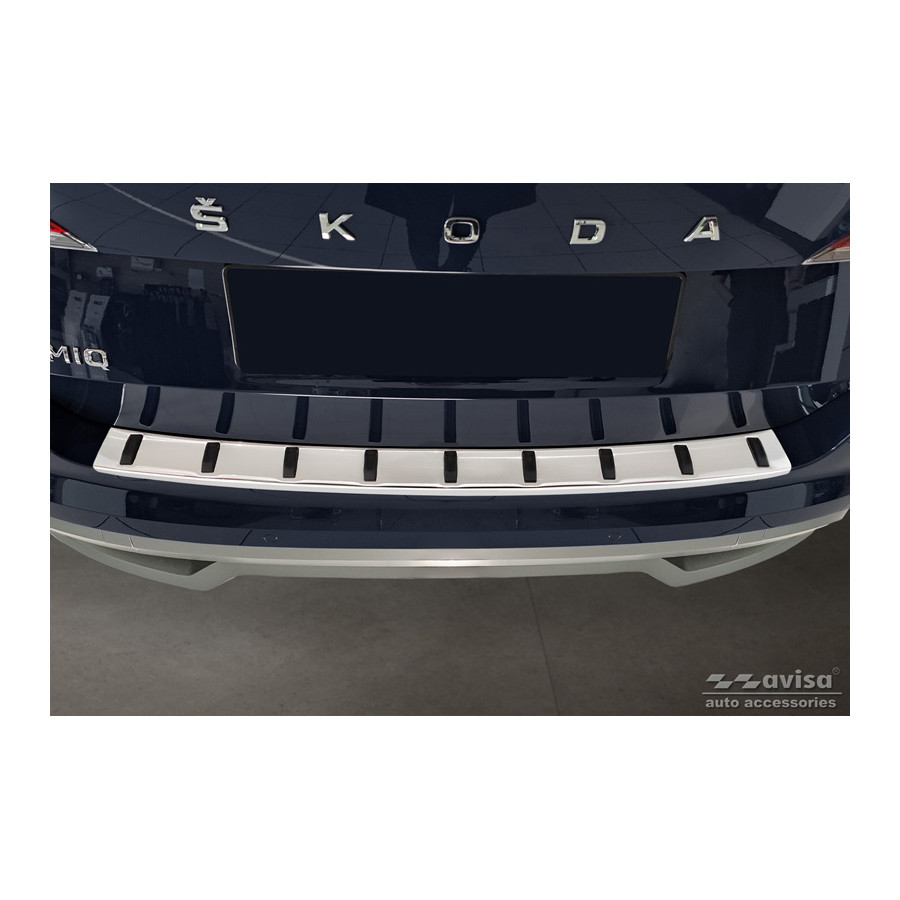 Stainless Steel Rear Bumper Protector suitable for Skoda Kamiq 2019- 'STRONG EDITION'. Provide optimal protection against daily wear and tear on the top of your rear bumper. This part of the car is very susceptible to damage from loading and unloading. Repair and repainting costs are high, and the value of your car can decrease. With a rear bumper protector, you can prevent damage to the top of your rear bumper. These are custom-made for your car and conform to your bumper, resulting in a perfect fit. Material: The Avisa 'STRONG EDITION' protectors are made of stainless steel combined with hardened polyurethane ribs, which not only provides protection but also gives your car a stylish appearance. The material is sturdy, durable, and weatherproof. This ensures the protector will last for years. With over 30 years of experience, Avisa is a leader in the design and production of these protectors. These are available in various colors and styles. Installation: These protectors are very easy to install. They are attached with double-sided 3M tape, which will not damage the original paint. This is included in the package, along with complete schematic installation instructions. Installation takes about 10 minutes. Primer: A primer is included for a selection of rear bumper protectors that are attached directly to unpainted bumpers. The primer enhances the adhesion of the 3M tape.