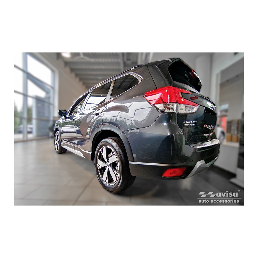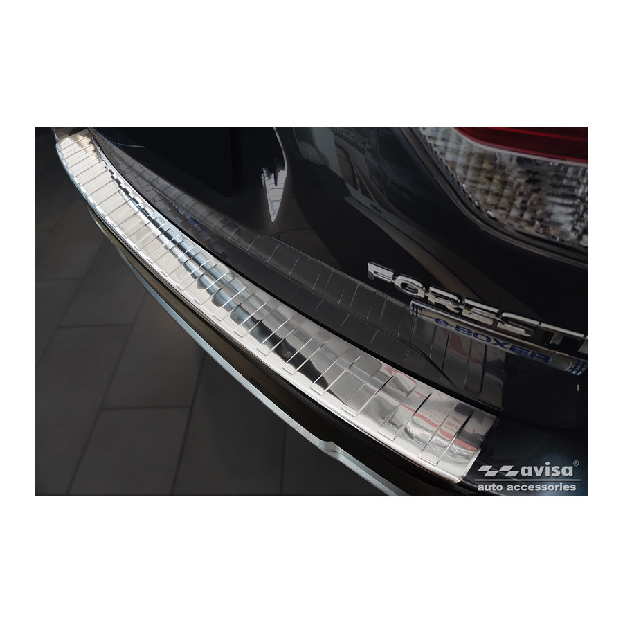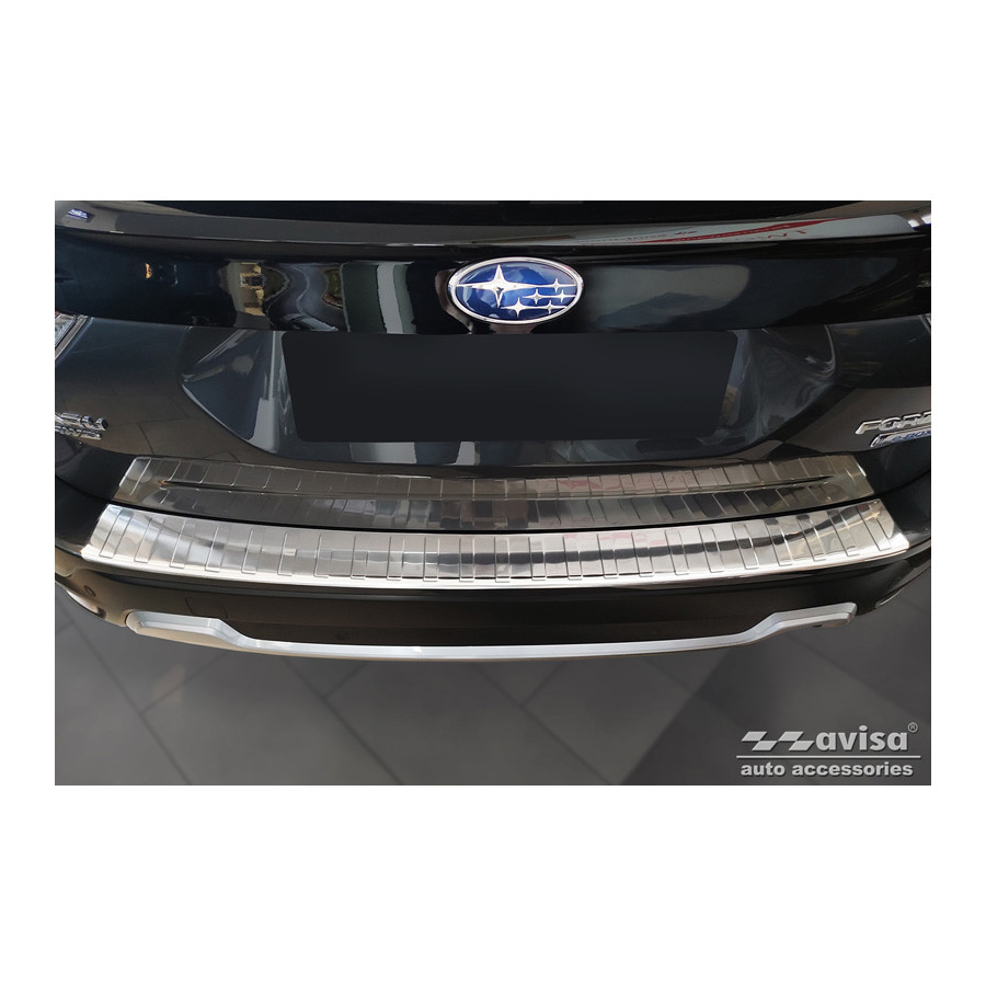 Stainless Steel Rear Bumper Protector Subaru Forester (SK) 2018- 'Ribs' Provides optimal protection against daily wear and tear on the top of the rear bumper. This part of the car is very susceptible to damage from loading and unloading. Repair and repainting costs are high, and the value of your car can decrease.