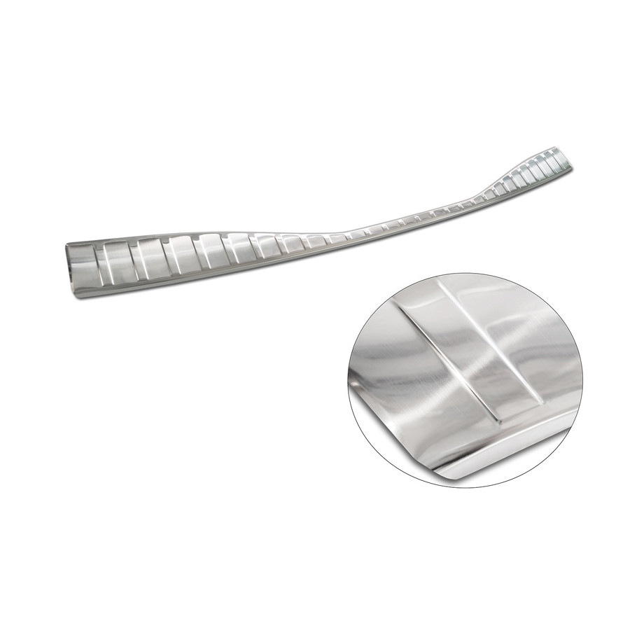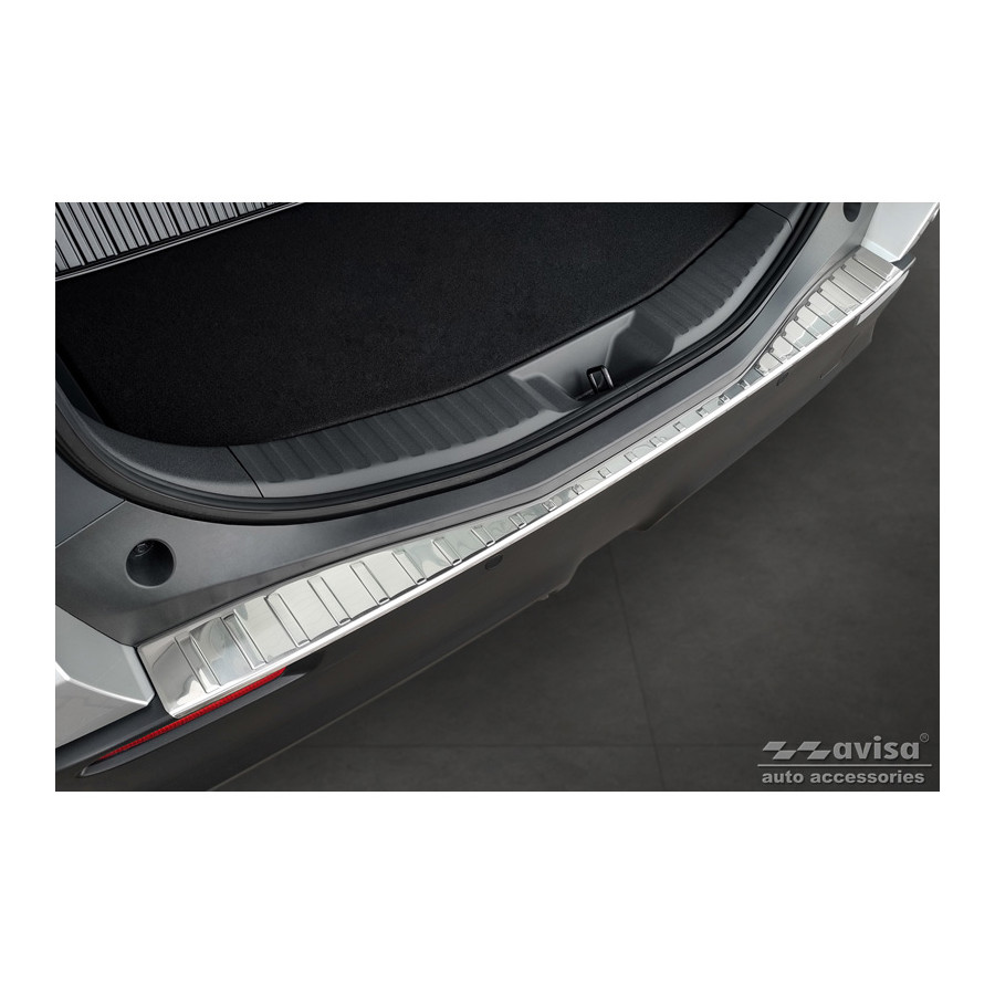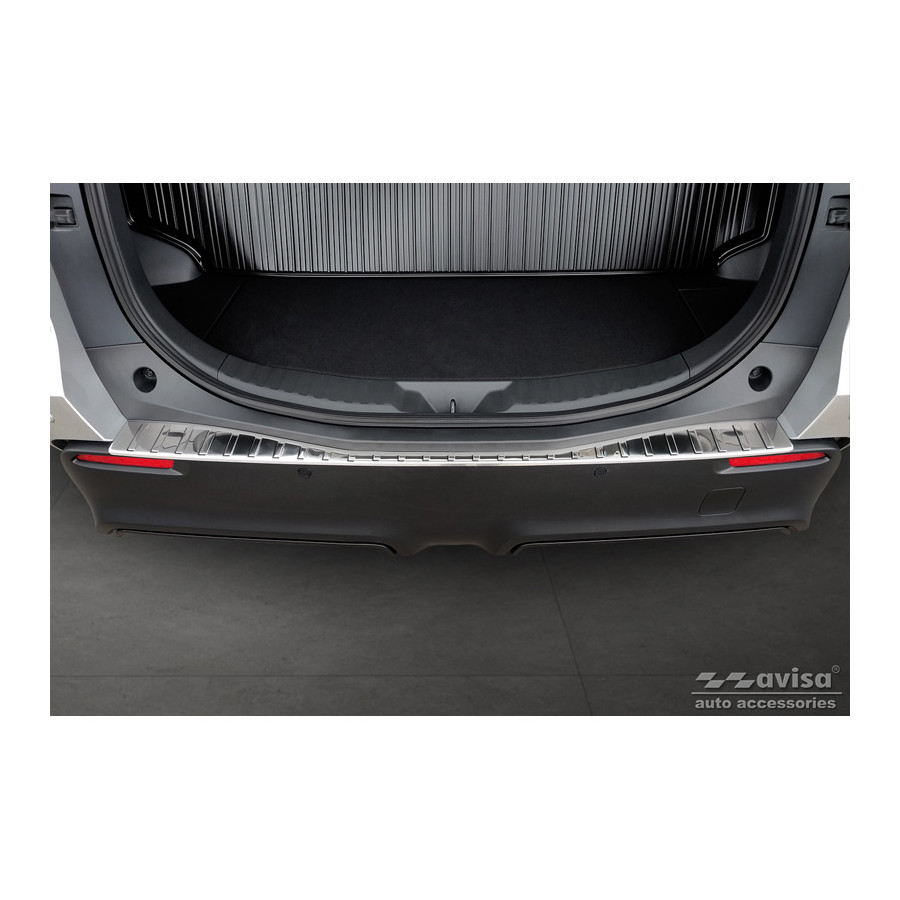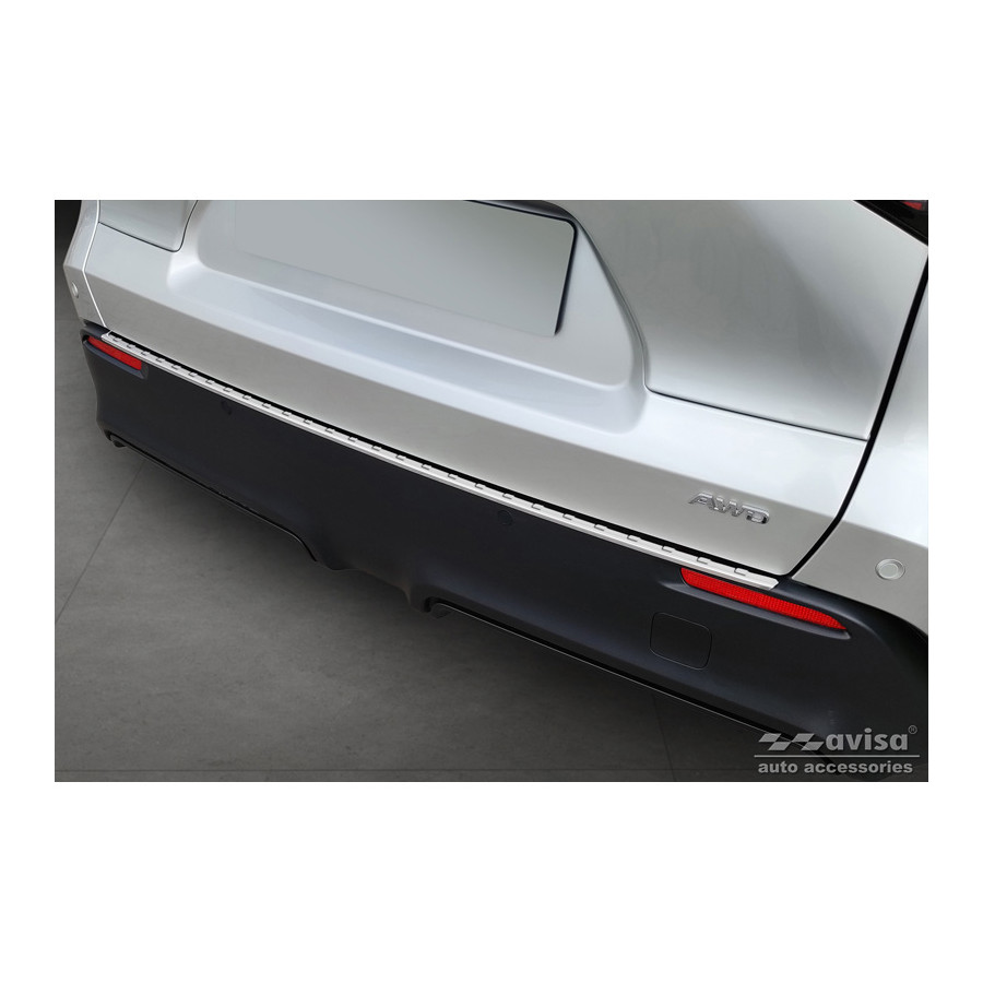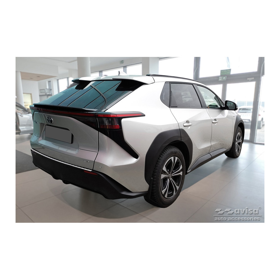 Stainless steel rear bumper protector suitable for Toyota bZ4X 2021- 'Ribs'. Provide optimal protection against daily wear and tear on the top of the rear bumper. This part of the car is particularly susceptible to damage from loading and unloading. Repair and repainting costs are high, and the value of your car can decrease.