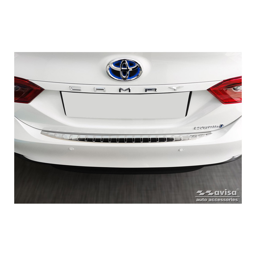 Toyota Camry Hybrid (V7) 2017-2021 & FL 2021 Stainless Steel Rear Bumper Protector "Ribs" Provides optimal protection against daily wear and tear on the top of the rear bumper. This part of the car is particularly susceptible to damage from loading and unloading. Repair and repainting costs are high, and the value of your car can decrease.