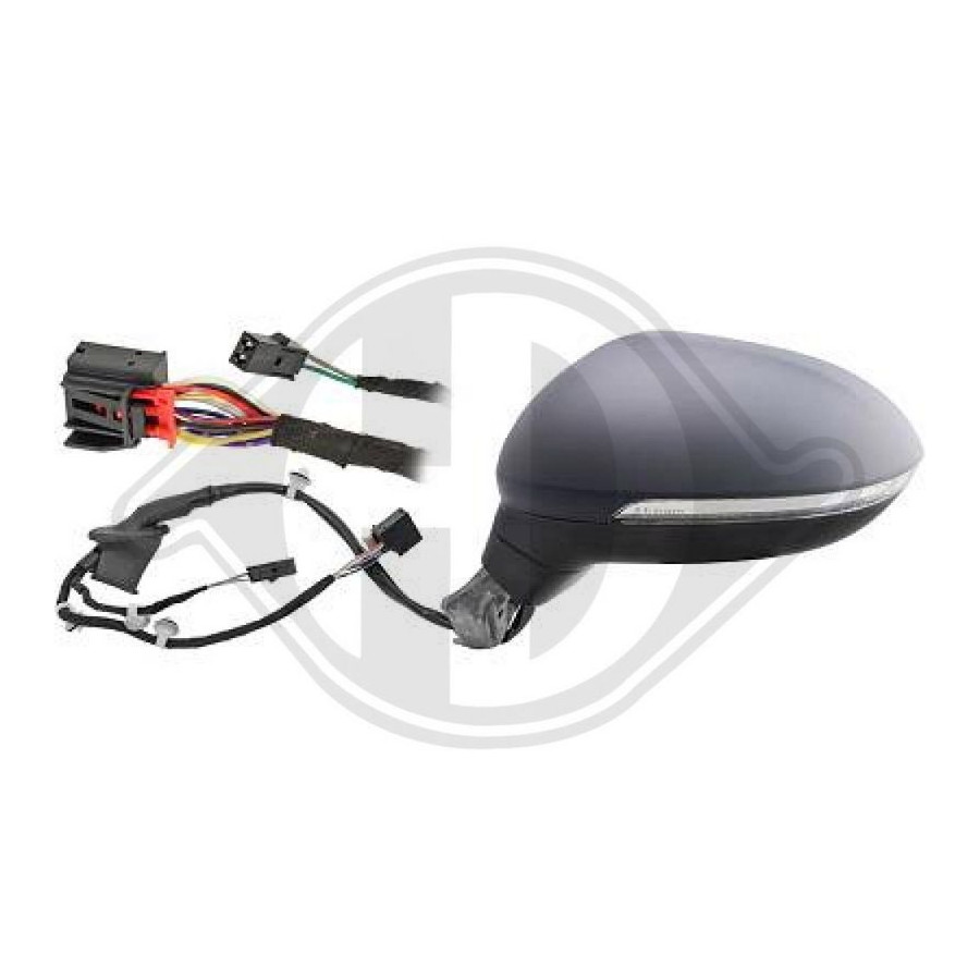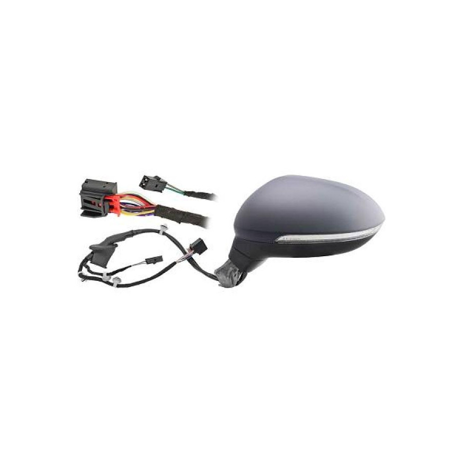 Fitting Position Left (passenger side) Surface Primed Outer/Inner Mirror Spherical For electric mirror adjustment Heatable Complete Mirror Electronically foldable With memory Performance For vehicles with lane assist Outer/Inner Mirror With entrance lighting Light Function With flashing light (LED) Warranty 2 years Number of contacts 17 -